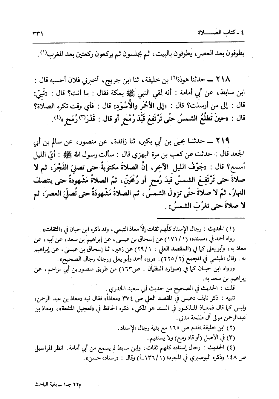 218 - حَدَّثَنَا هَوْذَةُ بْنُ خَلِيفَةَ، ثنا ابْنُ جُرَيْجٍ، أَخْبَرَنِي فُلَانٌ أَحْسِبُهُ قَالَ: ابْنُ سَابِطٍ , عَنْ أَبِي أُمَامَةَ أَنَّهُ لَقِيَ النَّبِيَّ صَلَّى اللهُ عَلَيْهِ وَسَلَّمَ بِمَكَّةَ فَقَالَ: " §مَا أَنْتَ؟ قَالَ: «نَبِيٌّ» قَالَ: إِلَى مَنْ أُرْسِلْتَ؟ قَالَ: «إِلَى الْأَحْمَرِ وَالْأَسْوَدِ» , قَالَ: فَأَيُّ وَقْتٍ تَكْرَهُ الصَّلَاةَ؟ قَالَ: " حِينَ تَطْلُعُ الشَّمْسُ حَتَّى تَرْتَفِعَ قِيدَ رُمْحٍ أَوْ قَالَ: قَدْرَ رُمْحٍ "