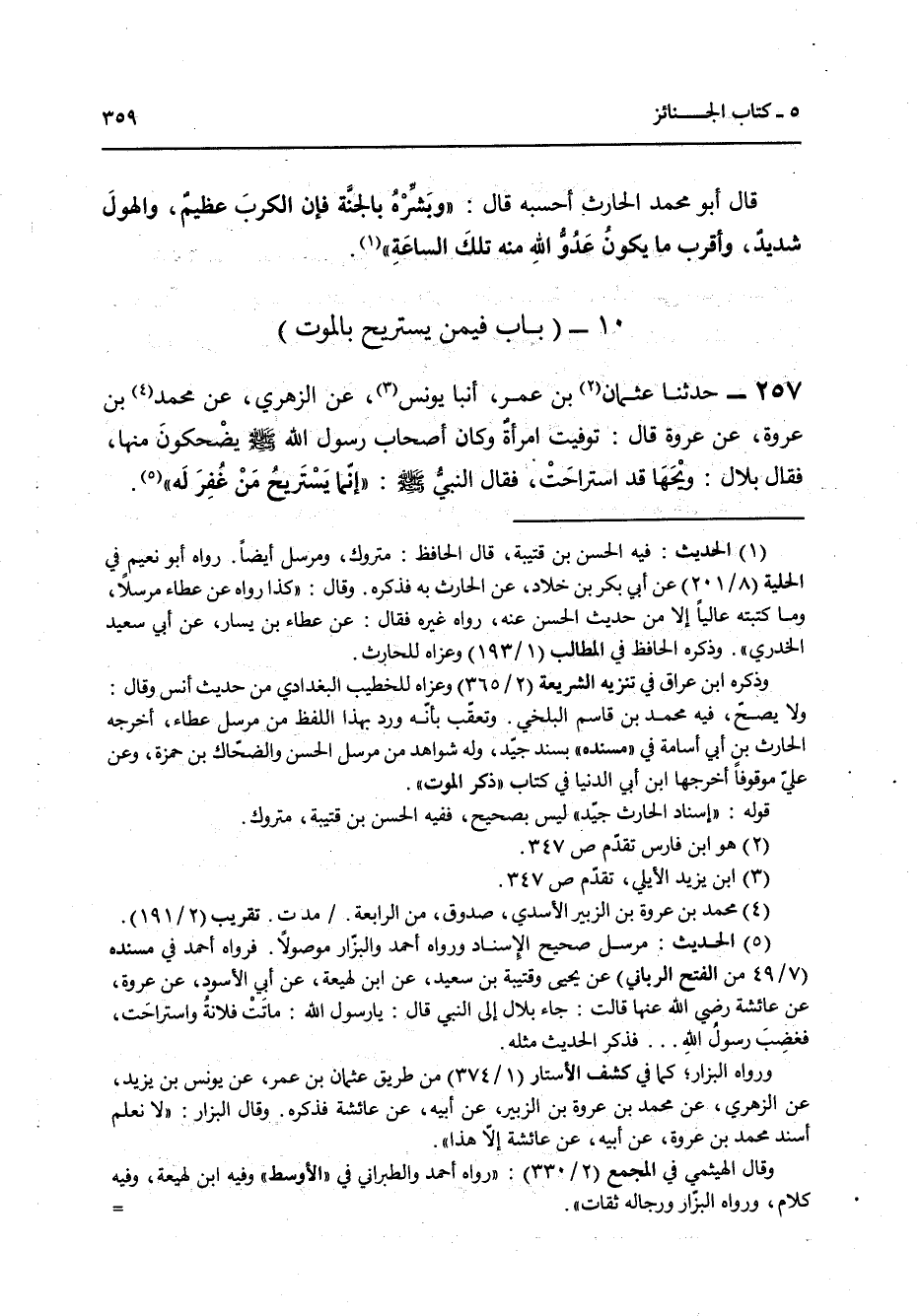 257 - حَدَّثَنَا عُثْمَانُ بْنُ عُمَرَ، أَنْبَأَ يُونُسُ، عَنِ الزُّهْرِيِّ، عَنْ مُحَمَّدِ بْنِ عُرْوَةَ، عَنْ عُرْوَةَ قَالَ: تُوُفِّيَتِ امْرَأَةٌ وَكَانَ أَصْحَابُ رَسُولِ اللَّهِ صَلَّى اللهُ عَلَيْهِ وَسَلَّمَ يَضْحَكُونَ مِنْهَا فَقَالَ بِلَالٌ وَيْحَهَا قَدِ اسْتَرَاحَتْ فَقَالَ النَّبِيُّ صَلَّى اللهُ عَلَيْهِ وَسَلَّمَ: «إِنَّمَا §يَسْتَرِيحُ مَنْ غُفِرَ لَهُ»