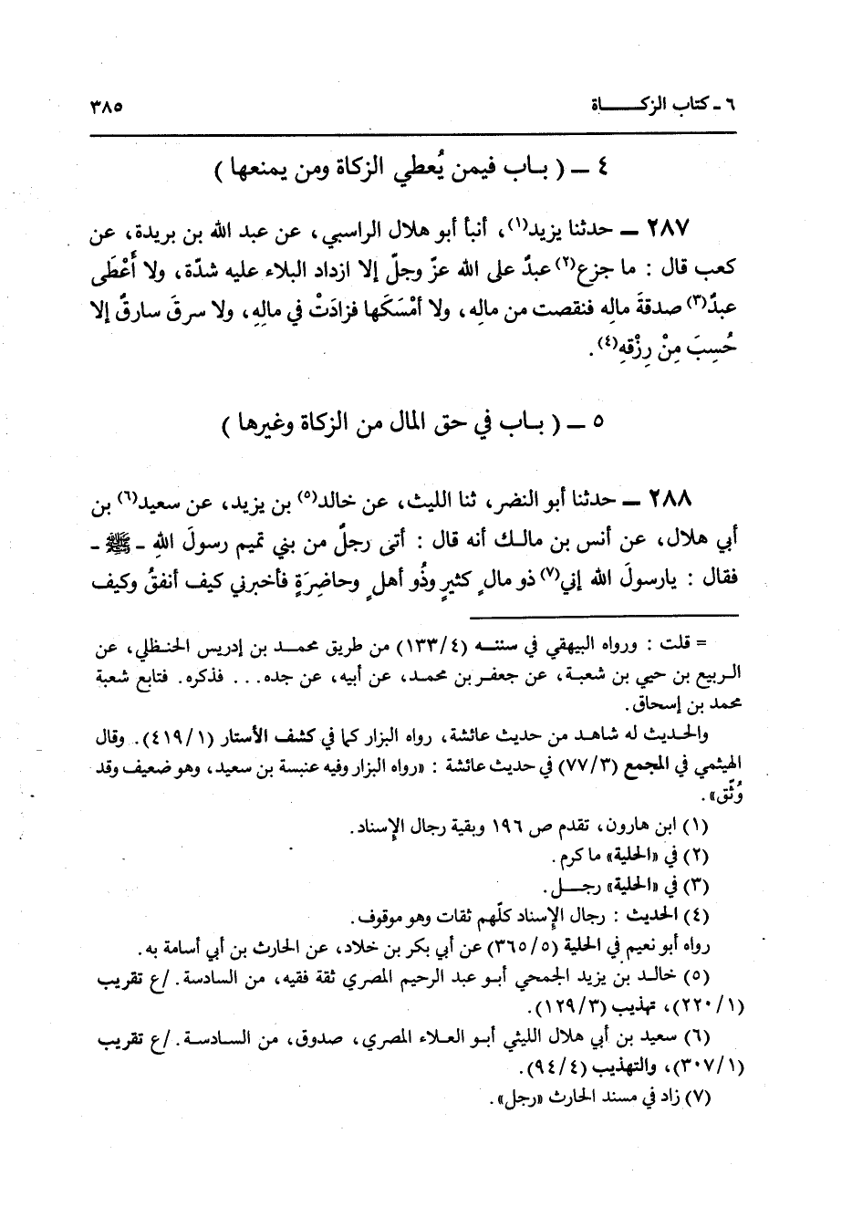 288 - حَدَّثَنَا أَبُو النَّضْرِ، ثنا اللَّيْثُ، عَنْ خَالِدِ بْنِ يَزِيدَ، عَنْ سَعِيدِ بْنِ أَبِي هِلَالٍ، عَنْ أَنَسِ بْنِ مَالِكٍ أَنَّهُ قَالَ: أَتَى رَجُلٌ مِنْ بَنِي تَمِيمٍ رَسُولَ اللَّهِ صَلَّى اللهُ عَلَيْهِ وَسَلَّمَ فَقَالَ: يَا رَسُولَ اللَّهِ إِنِّي ذُو مَالٍ كَثِيرٍ، وَذُو أَهْلٍ، وَحَاضِرَةٍ فَأَخْبِرْنِي كَيْفُ أُنْفِقُ وَكَيْفَ أَصْنَعُ؟ فَقَالَ رَسُولُ اللَّهِ صَلَّى اللهُ عَلَيْهِ وَسَلَّمَ: " §تُخْرِجُ الزَّكَاةَ مِنْ مَالِكَ فَإِنَّهَا طُهْرَةٌ تُطَهِّرُكَ، وَتَصِلُ أَقْرِبَاءَكَ، وَتَعْرِفُ حَقَّ السَّائِلِ وَالْجَارِ وَالْمِسْكِينِ {وَآتِ ذَا الْقُرْبَى حَقَّهُ وَالْمِسْكِينَ وَابْنَ} [الإسراء: 26] السَّبِيلِ وَلَا تُبَذِّرْ تَبْذِيرًا قَالَ: حَسْبِي يَا رَسُولَ اللَّهِ إِذَا أَدَّيْتُ الزَّكَاةَ إِلَى رَسُولِكَ فَقَدْ بَرِئْتُ مِنْهَا إِلَى اللَّهِ وَرَسُولِهِ , فَقَالَ رَسُولُ اللَّهِ صَلَّى اللهُ عَلَيْهِ وَسَلَّمَ: «إِذَا أَدَّيْتَهَا إِلَى رَسُولِي فَقَدْ بَرِئْتَ مِنْهَا، فَلَكَ أَجْرُهَا، وَإِثْمُهَا عَلَى مِنْ بَدَّلَهَا»