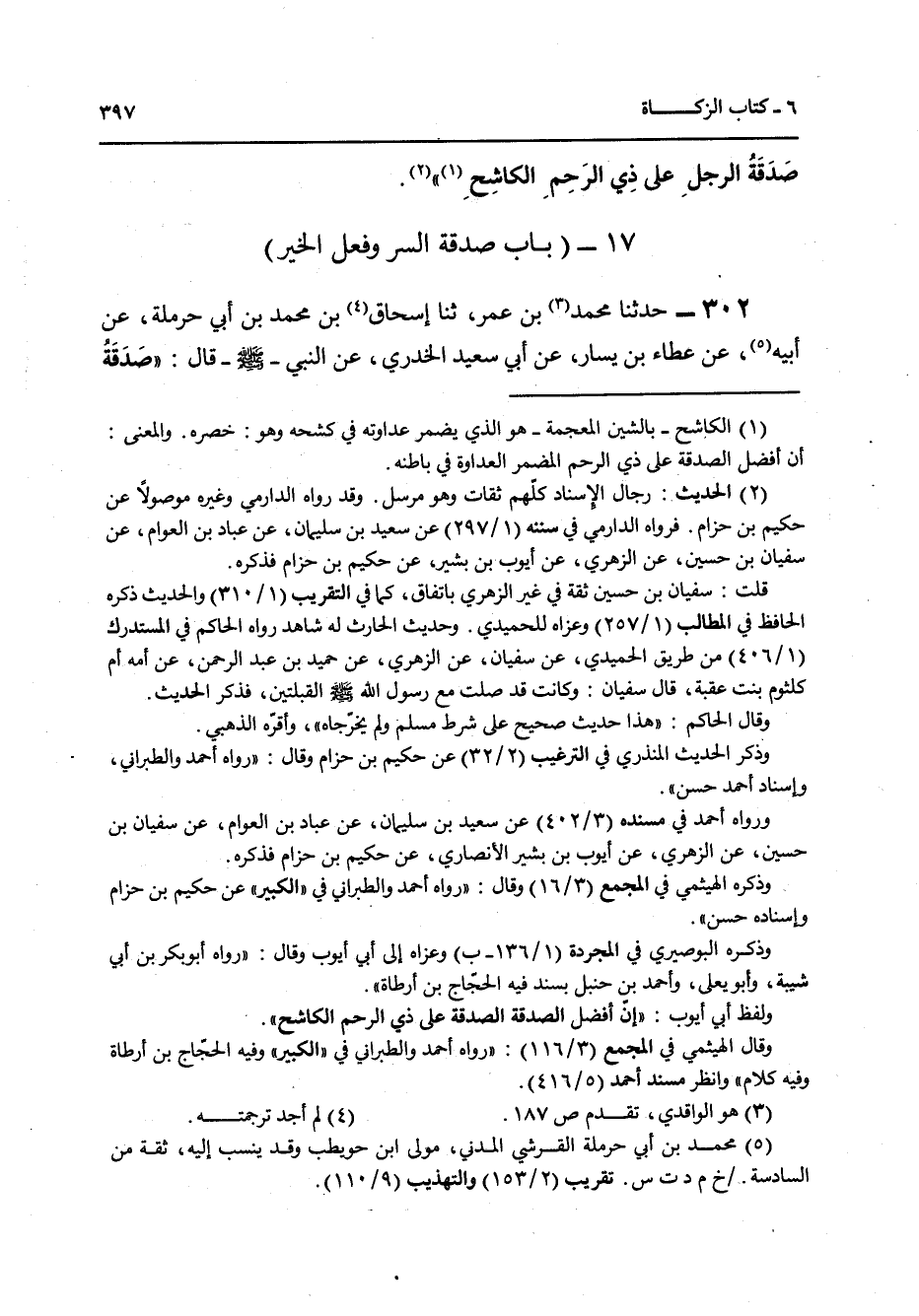 302 - حَدَّثَنَا مُحَمَّدُ بْنُ عُمَرَ، ثنا إِسْحَاقُ بْنُ مُحَمَّدِ بْنِ أَبِي حَرْمَلَةَ، عَنْ أَبِيهِ، عَنْ عَطَاءِ بْنِ يَسَارٍ، عَنْ أَبِي سَعِيدٍ الْخُدْرِيِّ عَنِ النَّبِيِّ صَلَّى اللهُ عَلَيْهِ وَسَلَّمَ قَالَ: «§صَدَقَةُ السِّرِّ تُطْفِئُ غَضَبَ الرَّبِّ تَبَارَكَ وَتَعَالَى , وَصِلَةُ الرَّحِمِ تَزِيدُ فِي الْعُمُرِ وَفِعْلُ الْخَيْرَاتِ يَقِي مَصَارِعَ السُّوءِ»