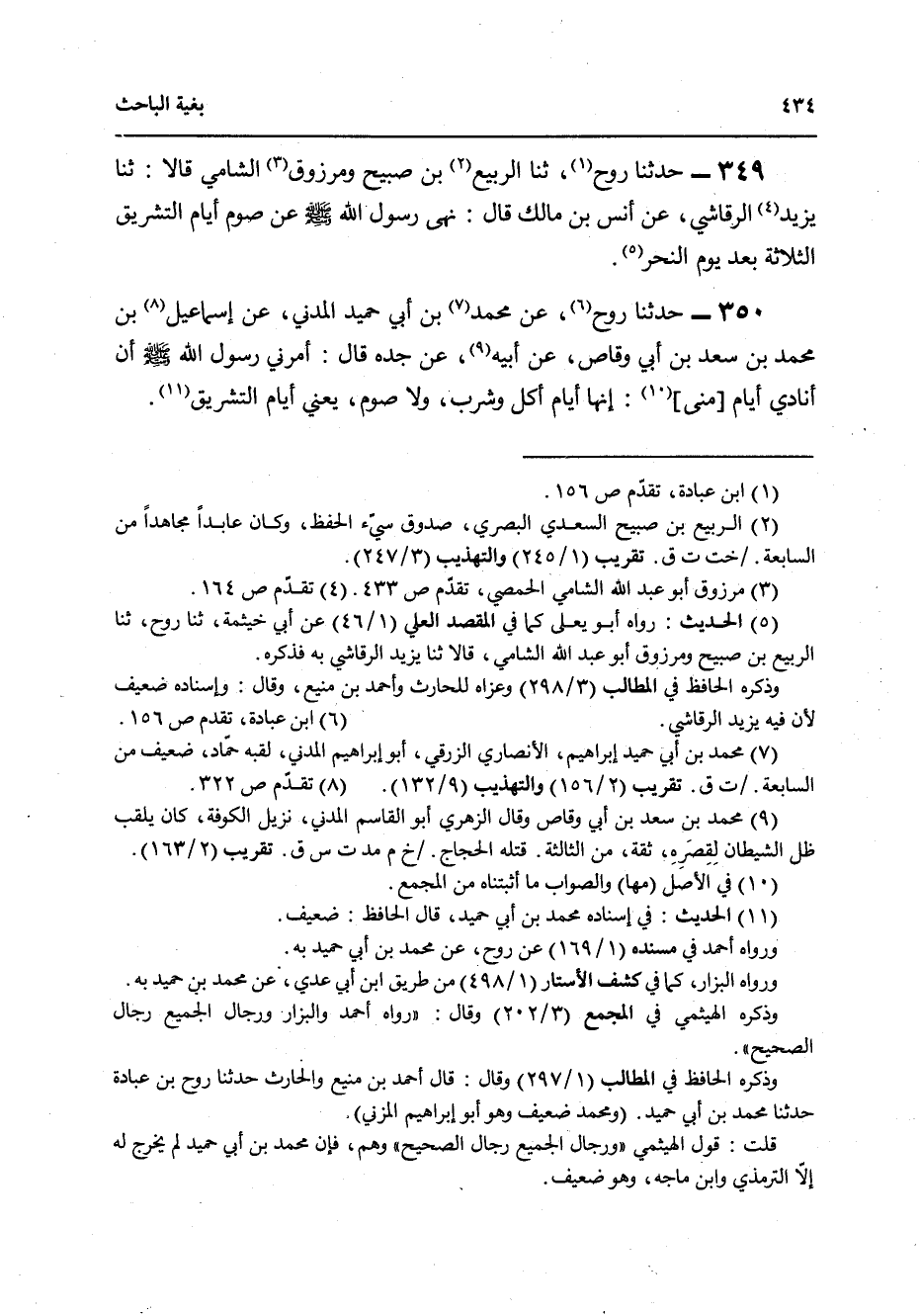 349 - حَدَّثَنَا رَوْحٌ، ثنا الرَّبِيعُ بْنُ صَبِيحٍ، وَمَرْزُوقٌ الشَّامِيُّ قَالَا: ثنا يَزِيدُ الرَّقَاشِيُّ، عَنْ أَنَسِ بْنِ مَالِكٍ قَالَ: «§نَهَى رَسُولُ اللَّهِ صَلَّى اللهُ عَلَيْهِ وَسَلَّمَ عَنْ صَوْمِ أَيَّامِ التَّشْرِيقِ الثَّلَاثَةِ بَعْدَ يَوْمِ النَّحْرِ»