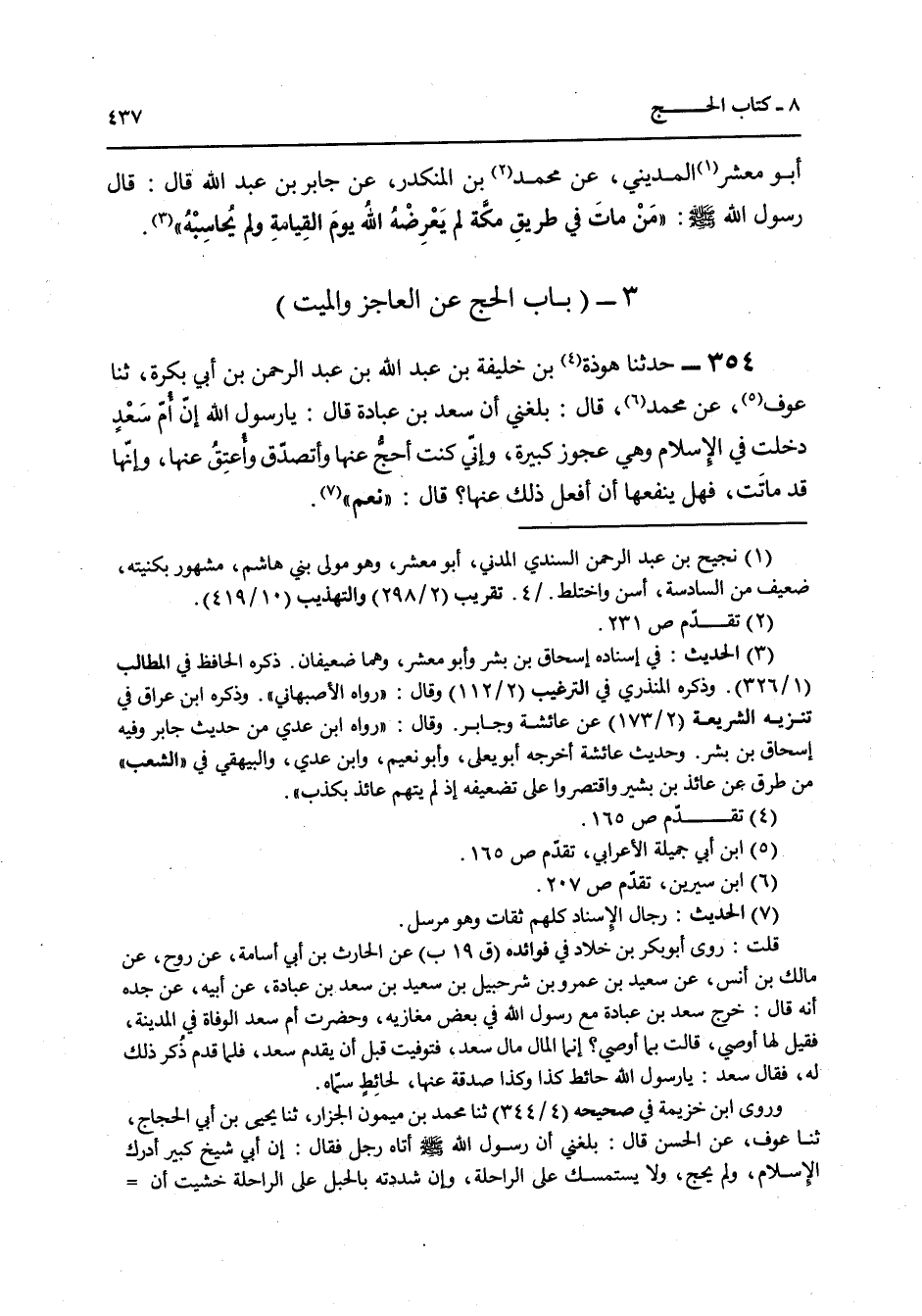 354 - حَدَّثَنَا هَوْذَةُ بْنُ خَلِيفَةَ بْنِ عَبْدِ اللَّهِ بْنِ عَبْدِ الرَّحْمَنِ بْنِ أَبِي بَكْرَةَ، ثنا عَوْفٌ، عَنْ مُحَمَّدٍ قَالَ: بَلَغَنِي، أَنَّ سَعْدَ بْنَ عُبَادَةَ قَالَ: يَا رَسُولَ اللَّهِ إِنَّ " §أُمَّ سَعْدٍ دَخَلَتْ فِي الْإِسْلَامِ وَهِيَ عَجُوزٌ كَبِيرَةٌ وَإِنِّي كُنْتُ أَحُجُّ عَنْهَا وَأَتَصَدَّقُ وَأُعْتِقُ عَنْهَا وَإِنَّهَا قَدْ مَاتَتْ فَهَلْ يَنْفَعُهَا أَنْ أَفْعَلَ ذَلِكَ عَنْهَا قَالَ: «نَعَمْ»