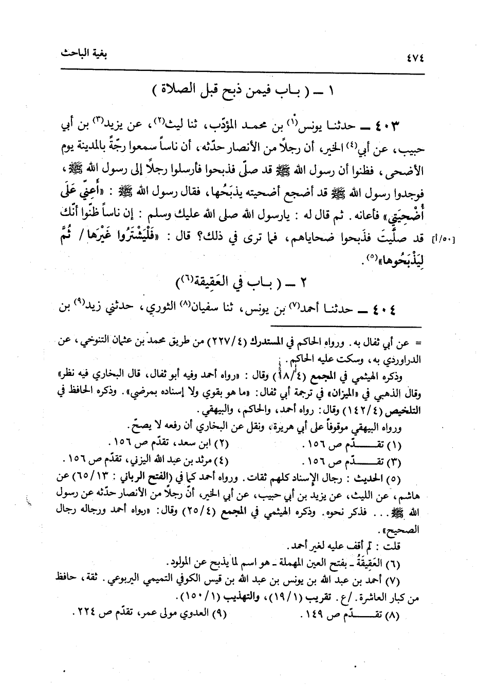 403 - حَدَّثَنَا يُونُسُ بْنُ مُحَمَّدٍ الْمُؤَدِّبُ، ثنا لَيْثٌ، عَنْ يَزِيدَ بْنِ أَبِي حَبِيبٍ، عَنْ أَبِي الْخَيْرِ أَنَّ رَجُلًا مِنَ الْأَنْصَارِ، حَدَّثَهُ، أَنَّ نَاسًا سَمِعُوا رَجَّةً بِالْمَدِينَةِ يَوْمَ الْأَضْحَى فَظُنُّوا أَنَّ رَسُولَ اللَّهِ صَلَّى اللهُ عَلَيْهِ وَسَلَّمَ قَدْ صَلَّى فَذَبَحُوا فَأَرْسَلُوا رَجُلًا إِلَى رَسُولِ اللَّهِ صَلَّى اللهُ عَلَيْهِ وَسَلَّمَ فَوَجَدُوا رَسُولَ اللَّهِ صَلَّى اللهُ عَلَيْهِ وَسَلَّمَ قَدْ أَضْجَعَ أُضْحِيَّتَهُ يَذْبَحُهَا فَقَالَ رَسُولُ اللَّهِ صَلَّى اللهُ عَلَيْهِ وَسَلَّمَ: «§أَعِنِّي عَلَى أُضْحِيَّتِي» , فَأَعَانَهُ، ثُمَّ قَالَ لَهُ: يَا رَسُولَ اللَّهِ صَلَّى اللَّهُ عَلَيْكَ وَسَلَّمَ إِنَّ نَاسًا ظَنُّوا أَنَّكَ قَدْ صَلَّيْتَ فَذَبَحُوا ضَحَايَاهُمْ فَمَا تَرَى فِي ذَلِكَ قَالَ: «فَلْيَشْتَرُوا غَيْرَهَا ثُمَّ لِيَذْبَحُوهَا»