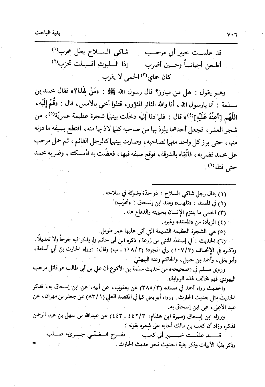694- حَدَّثنا دَاوُدُ بْنُ عَمْرٍو، حَدَّثنا أَبُو رَاشِدٍ الْمُثَنَّى بْنَ زُرْعَةَ، عَنْ مُحَمَّدِ بْنِ إِسْحَاقَ، حَدَّثَنِي عَبْدُ الله بْنُ سَهْلِ بْنِ عَبْدِ الرَّحْمَنِ بْنِ سَهْلٍ، أَخُو بَنِي حَارِثَةَ، عَنْ جَابِرِ بْنِ عَبْدِ الله الأَنْصَارِيِّ قَالَ: خَرَجَ مَرْحَبٌ الْيَهُودِيُّ مِنْ حِصْنِهِمْ قَدْ جَمَعَ سِلاَحَهُ يَرْتَجِزُ وَهُوَ يَقُولُ: