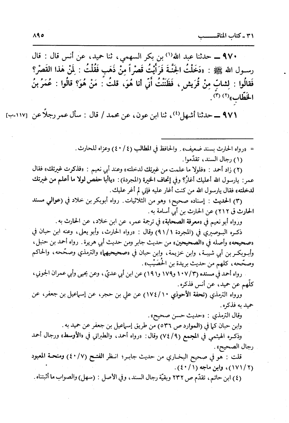970 - حَدَّثَنَا عَبْدُ اللَّهِ بْنُ بَكْرٍ السَّهْمِيُّ , ثنا حُمَيْدٌ , عَنْ أَنَسٍ قَالَ: قَالَ رَسُولُ اللَّهِ صَلَّى اللهُ عَلَيْهِ وَسَلَّمَ: " §دَخَلْتُ الْجَنَّةَ فَرَأَيْتُ قَصْرًا مِنْ ذَهَبٍ , فَقُلْتُ لِمَنْ هَذَا الْقَصْرُ؟ فَقَالُوا لِشَابٍّ مِنْ قُرَيْشٍ , فَظَنَنْتُ أَنِّي أَنَا هُوَ , قُلْتُ: مَنْ هُوَ؟ قَالُوا: عُمَرُ بْنُ الْخَطَّابِ "