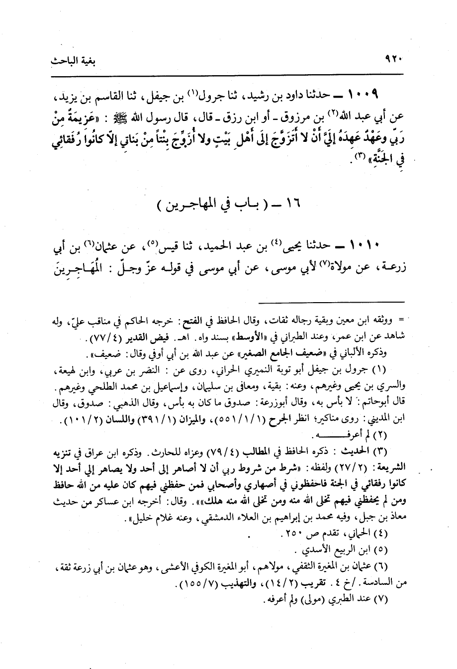 1010 - حَدَّثَنَا يَحْيَى بْنُ عَبْدِ الْحَمِيدِ , ثنا قَيْسٌ , عَنْ عُثْمَانَ بْنِ أَبِي زُرْعَةَ , عَنْ مَوْلَاةٍ لِأَبِي مُوسَى , عَنْ أَبِي مُوسَى , فِي قَوْلِهِ عَزَّ وَجَلَّ §الْمُهَاجِرِينَ الْأَوَّلِينَ، قَالَ: مَنْ صَلَّى الْقِبْلَتَيْنِ مَعَ رَسُولِ اللَّهِ صَلَّى اللهُ عَلَيْهِ وَسَلَّمَ "