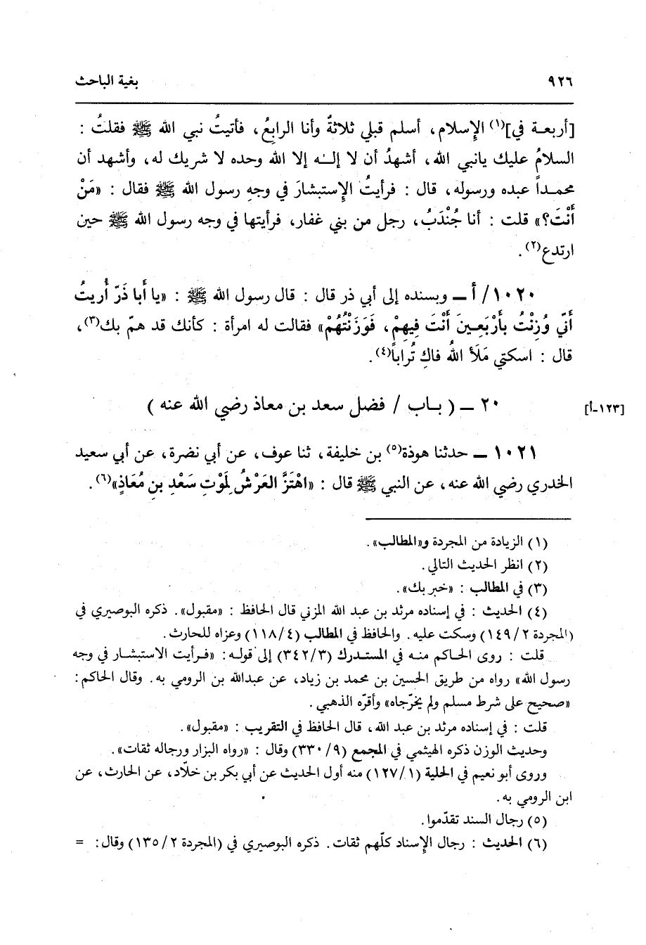 1021 - حَدَّثَنَا هَوْذَةُ بْنُ خَلِيفَةَ , ثنا عَوْفٌ , عَنْ أَبِي نَضْرَةَ , عَنْ أَبِي سَعِيدٍ الْخُدْرِيِّ رَضِيَ اللَّهُ عَنْهُ عَنِ النَّبِيِّ صَلَّى اللهُ عَلَيْهِ وَسَلَّمَ قَالَ: «§اهْتَزَّ الْعَرْشُ لِمَوْتِ سَعْدِ بْنِ مُعَاذٍ»