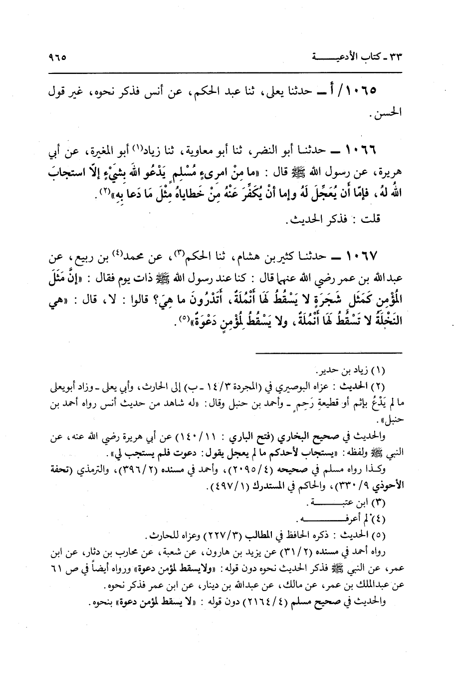 1066 - حَدَّثَنَا أَبُو النَّضْرِ , ثنا أَبُو مُعَاوِيَةَ , ثنا زِيَادٌ أَبُو الْمُغِيرَةِ , عَنْ أَبِي هُرَيْرَةَ , عَنْ رَسُولِ اللَّهِ صَلَّى اللهُ عَلَيْهِ وَسَلَّمَ قَالَ: «§مَا مِنَ امْرِئٍ مُسْلِمٍ يَدْعُو اللَّهَ بِشَيْءٍ إِلَّا اسْتَجَابَ اللَّهُ لَهُ فَإِمَّا أَنْ يُعَجِّلَ لَهُ وَإِمَّا أَنْ يُكَفِّرَ عَنْهُ مِنْ خَطَايَاهُ مِثْلَ مَا دَعَا بِهِ» , قُلْتُ: فَذَكَرَ الْحَدِيثَ