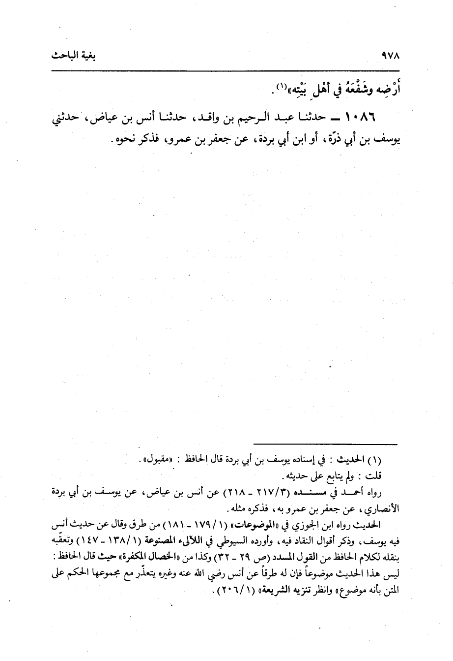 1086- حَدَّثنا عَبْدُ الرَّحِيمِ بْنُ وَاقِدٍ، حَدَّثنا أَنَسُ بْنُ عِيَاضٍ، حَدَّثَنِي يُوسُفُ بْنُ أَبِي ذَرَّةَ، أَوِ ابْنُ أَبِي بُرْدَةَ، عَنْ جَعْفَرِ بْنِ عَمْرٍو، فَذَكَرَ نَحْوَهُ.