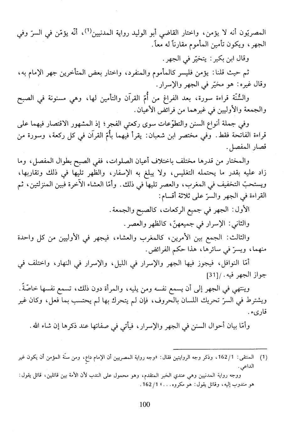 المصريون أنه لا يؤمن، واختار القاضي أبو الوليد رواية المدنيين، أنه يؤمن في السر وفي الجهر، ويكون تأمين المأموم مقارنا له معا.