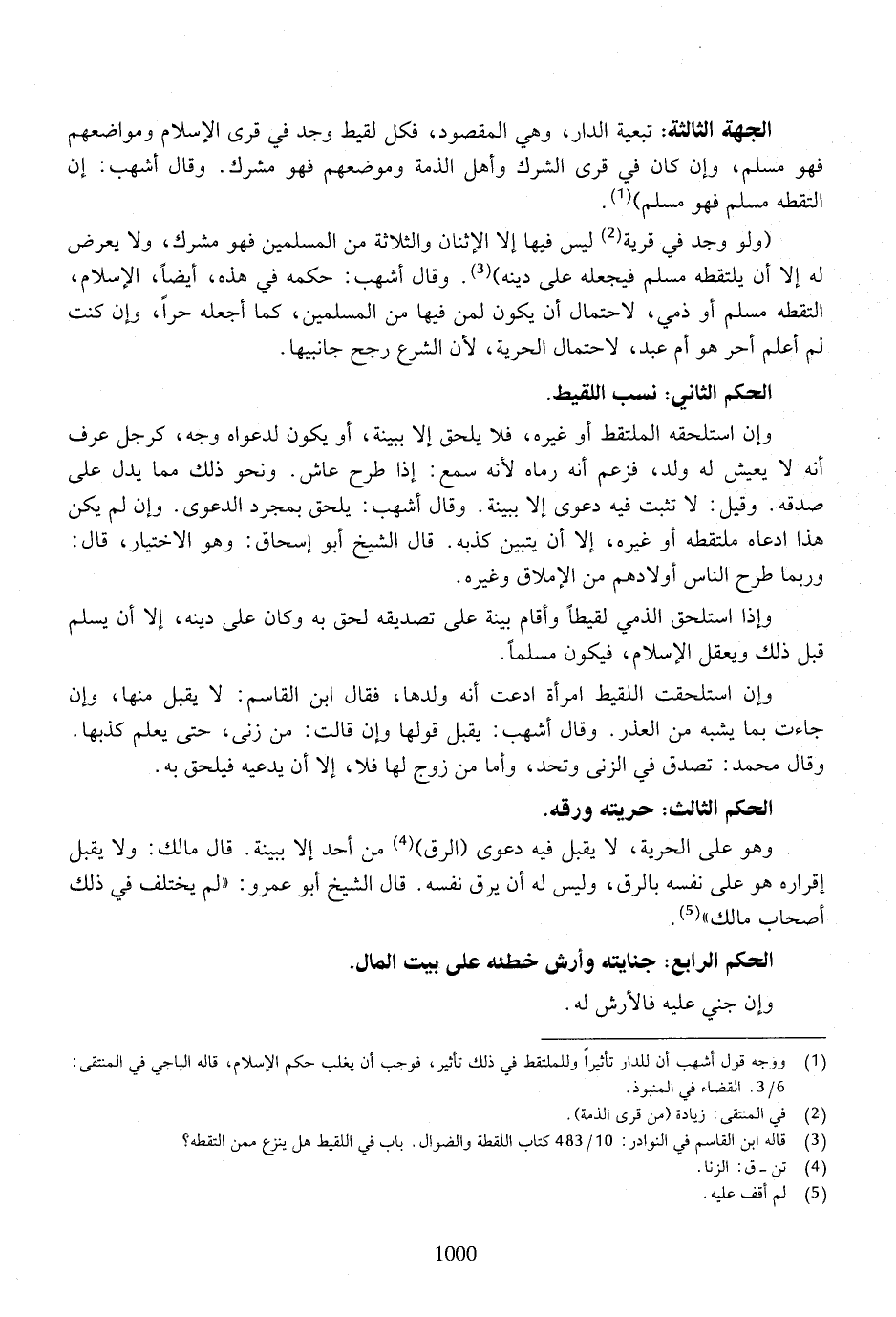 الجهة الثالثة: تبعية الدار، وهي المقصود، فكل لقيط وجد في قرى الإسلام ومواضعهم فهو مسلم، وإن كان في قرى الشرك وأهل الذمة وموضعهم فهو مشرك. وقال أشهب: إن التقطه مسلم فهو مسلم].