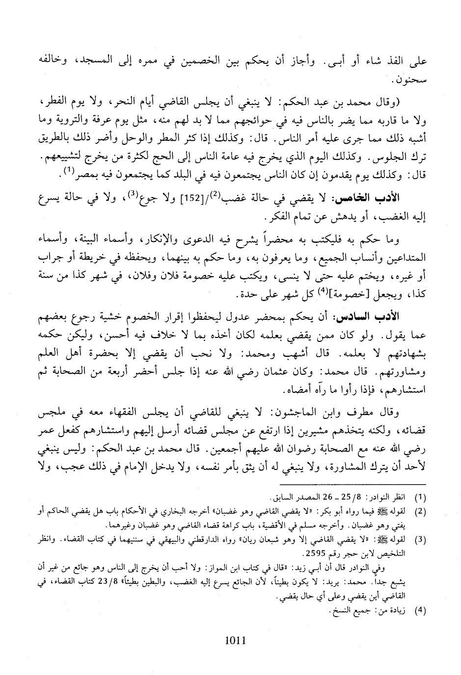 الأدب الخامس: لا يقضي في حالة غضب ولا جوع، ولا في حالة يسرع إليه الغضب، أو يدهش عن تمام الفكرز.
