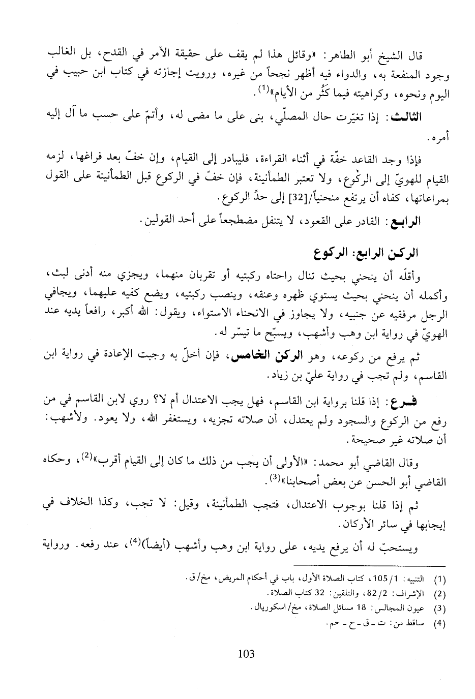 ثم إذا قلنا بوجوب الاعتدال، فتجب الطمأنينة، وقيل: لا تجب، وكذا الخلاف في إيجابها في سائر الأركان.