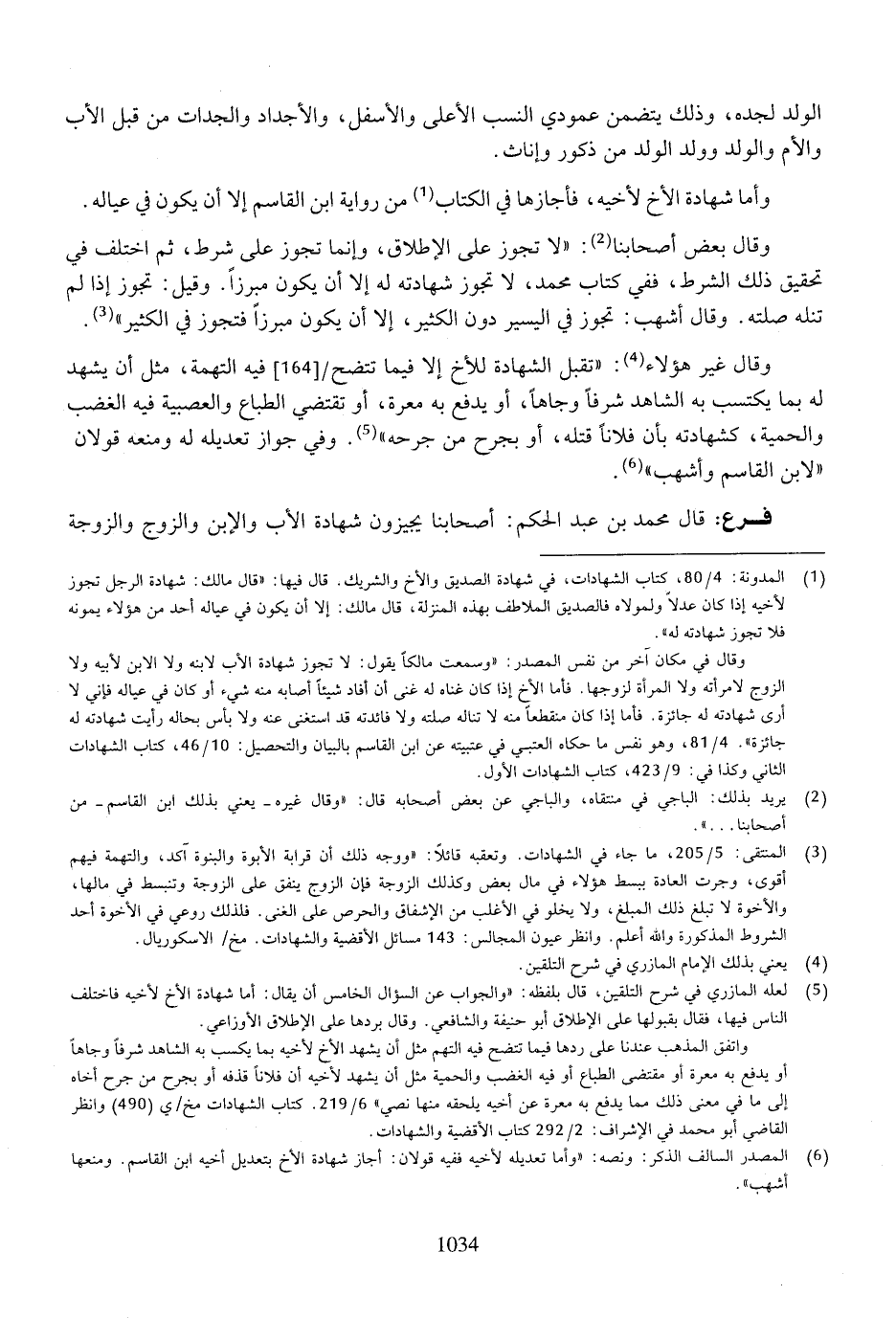 وقال غير هؤلاء: "تقبل الشهادة للأخ إلا فيما تتضح فيه التهمة، مثل أن يشهد له بما يكتسب به الشاهد شرفًا وجاهًا، أو يدفع به معرة، أو تقتضي الطباع والعصبية فيه الغضب والحمية، كشهادته بأن فلانًا قتله، أو بجرح من جرحه). وفي جواز تعديله له ومنعه قولان "لابن القاسم وأشهب".
