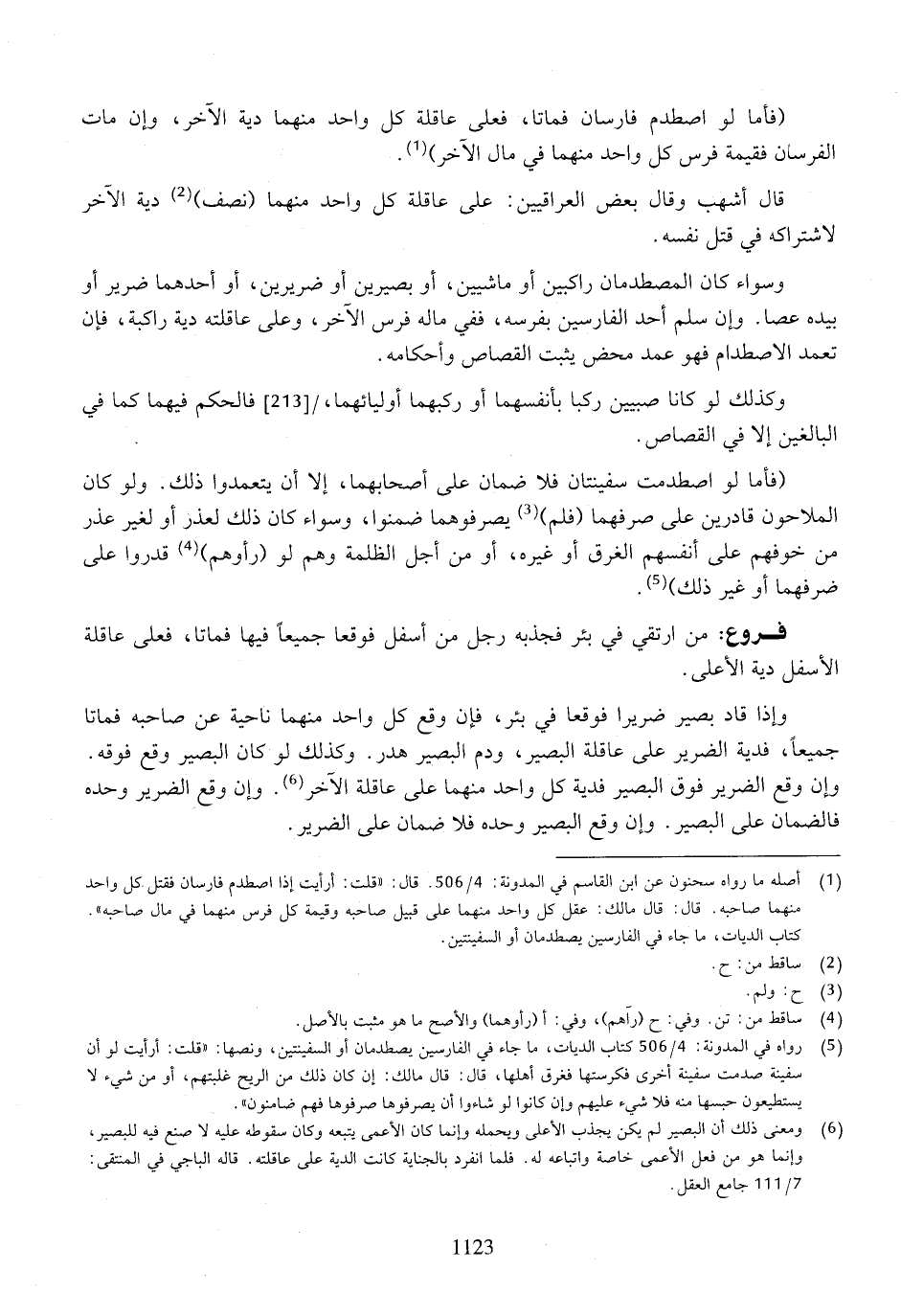 وسواء كان المصطدمان راكبين أو ماشيين، أو بصيرين أو ضريرين، أو أحدهما ضرير أو بيده عصا. وإن سلم أحد الفارسين بفرسه، ففي ماله فرس الآخر، وعلى عاقلته دية راكبة، فإن تعمد الاصطدام فهو عمد محض يثبت القصاص وأحكامه.