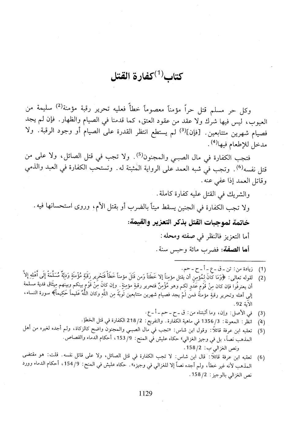 وكل حر مسلم قتل حرصا مؤمنًا معصومًا خطأ فعليه تحرير رقبة مؤمنة سليمة من العيوب، ليس فيها شرك ولا عقد من عقود العتق، كما قدمنا في الصيام والظهار. فإن لم يجد فصيام شهرين متتابعين. [فإن] لم يستطع انتظر القدرة علىالصيام أو وجود الرقبة. ولا مدخل للإطعام فيها.