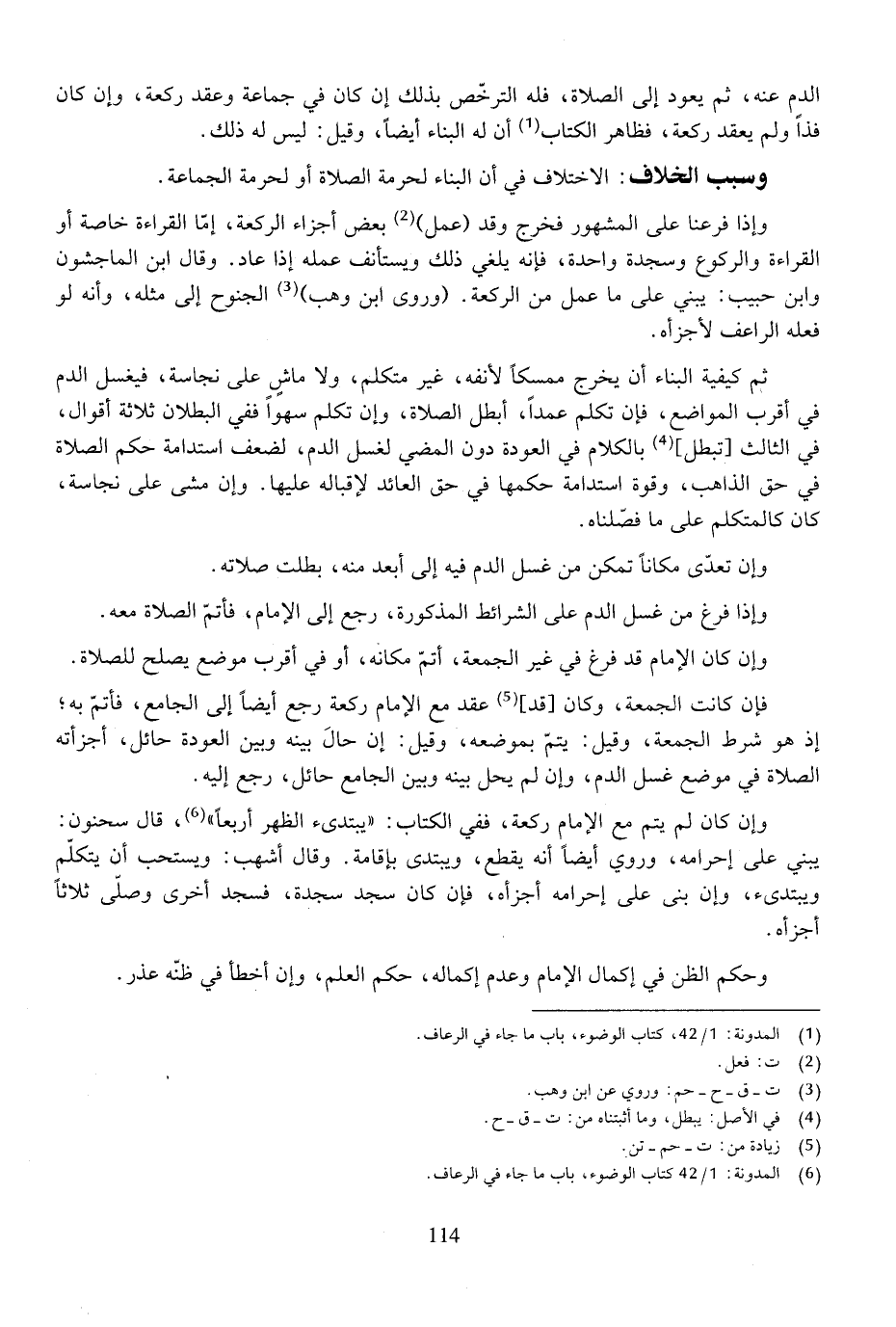 ثم كيفية البناء أن يخرج ممسكا لأنفه، غر متكلم، ولا ماش على نجاسة، فيغسل الدم في أقرب المواضع، فإن تكلم عمدا، أبطل الصلاة، وإن تكلم سهوا ففي البطلان ثلاثة أقوال، في الثالث [تبطل] بالكلام في العودة دون المضي لغسل الدم، لضعف استدامة حكم الصلاة في حق الذاهب، وقوة استدامة حكمها في حق العائد لإقباله عليها. وإن مشى على نجاسة، كان كالمتكلم على ما فصلناه.