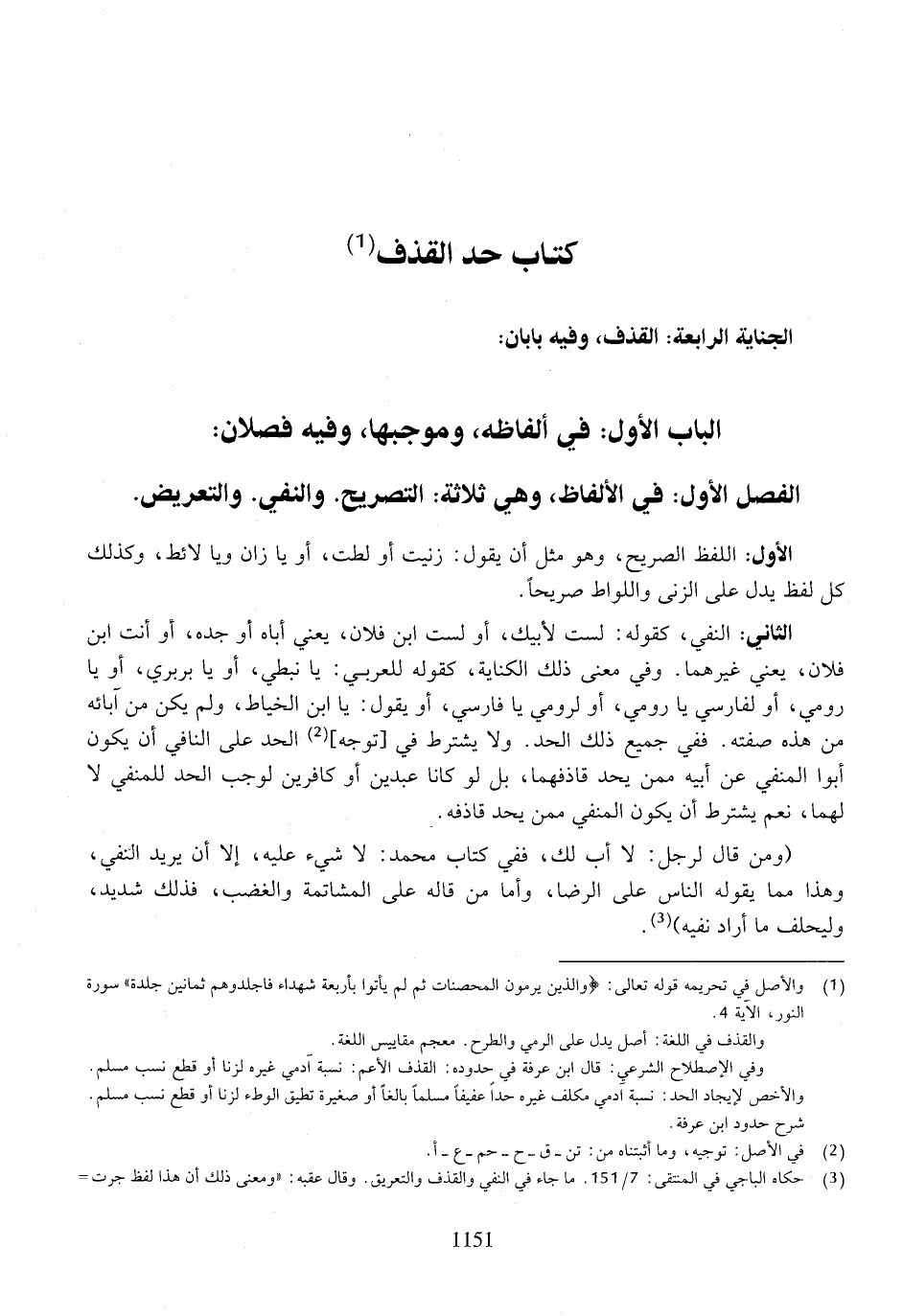 الباب الأول: في ألفاظه، وموجبها، وفيه فصلان