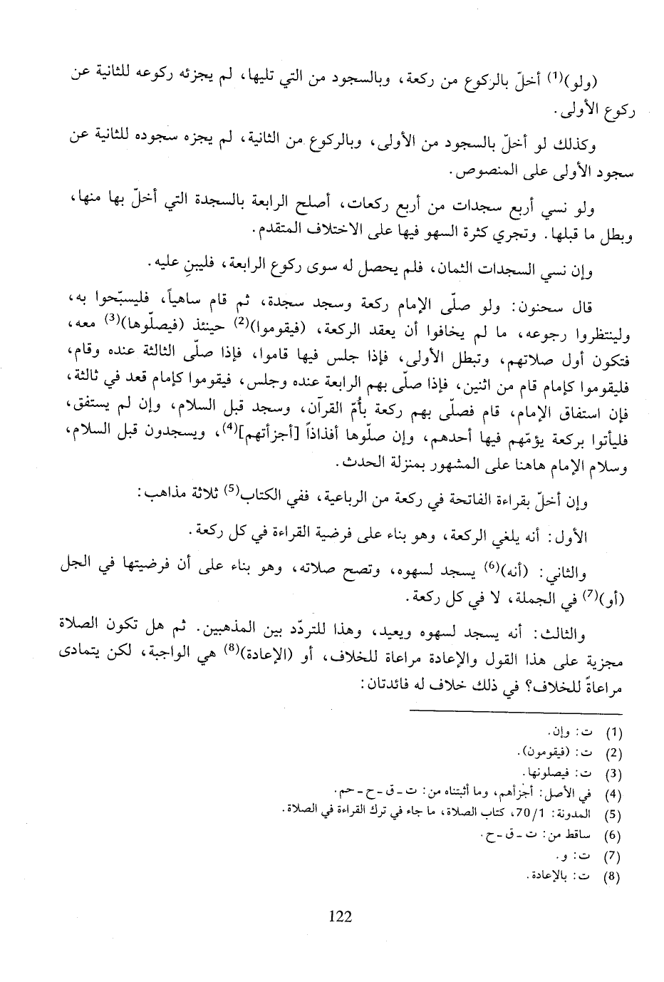 قال سحنون: ولو صلى الإمام ركعة وسجد سجدة، ثم قام ساهيا، فليسبحوا به، ولينتظروا رجوعه، ما لم يخافوا أن يعقد الركعة، (فيقوموا) حينئذ (فيصلوها) معه، فتكون أول صلاتهم، وتبطل الأولى، فإذا جلس فيها قاموا، فإذا صلى الثالثة عنده وقام، فليقوموا كإمام قام من اثنين، فإذا صلى بهم الرابعة عنده وجلس، فيقوموا كإمام قعد في ثالثة، فإن استفاق الإمام، قام فصلى بهم ركعة بأم القرآن، وسجد قبل السلام، وإن لم يستفق، فليأتوا بركعة يؤمهم فيها أحدهم، وإن صلوها أفذاذا [أجزأتهم]، ويسجدون قبل السلام، وسلام الإمام ها هنا على المشهور بمنزلة الحدث.