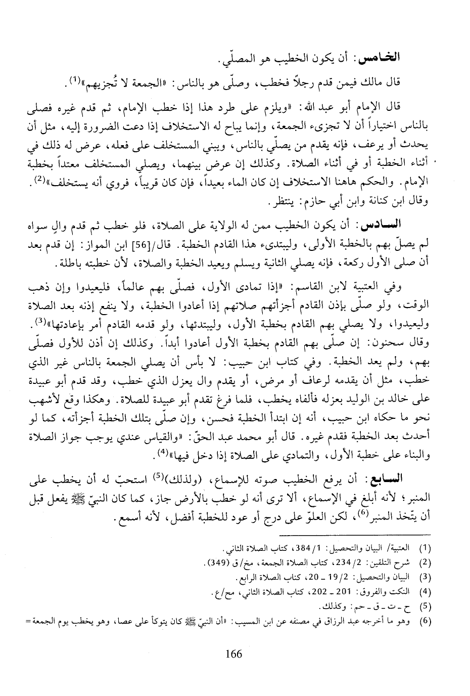 السادس: أن يكون الخطيب ممن له الولاية على الصلاة، فلو خطب ثم قدم وال سواه لم يصل بهم بالخطبة الأولى، وليبتدئ هذا القادم الخطبة. قال ابن المواز: إن قدم بعد أن صلى الأول ركعة، فإنه يصلي الثانية ويسلم ويعيد الخطبة والصلاة، لأن خطبته باطلة.