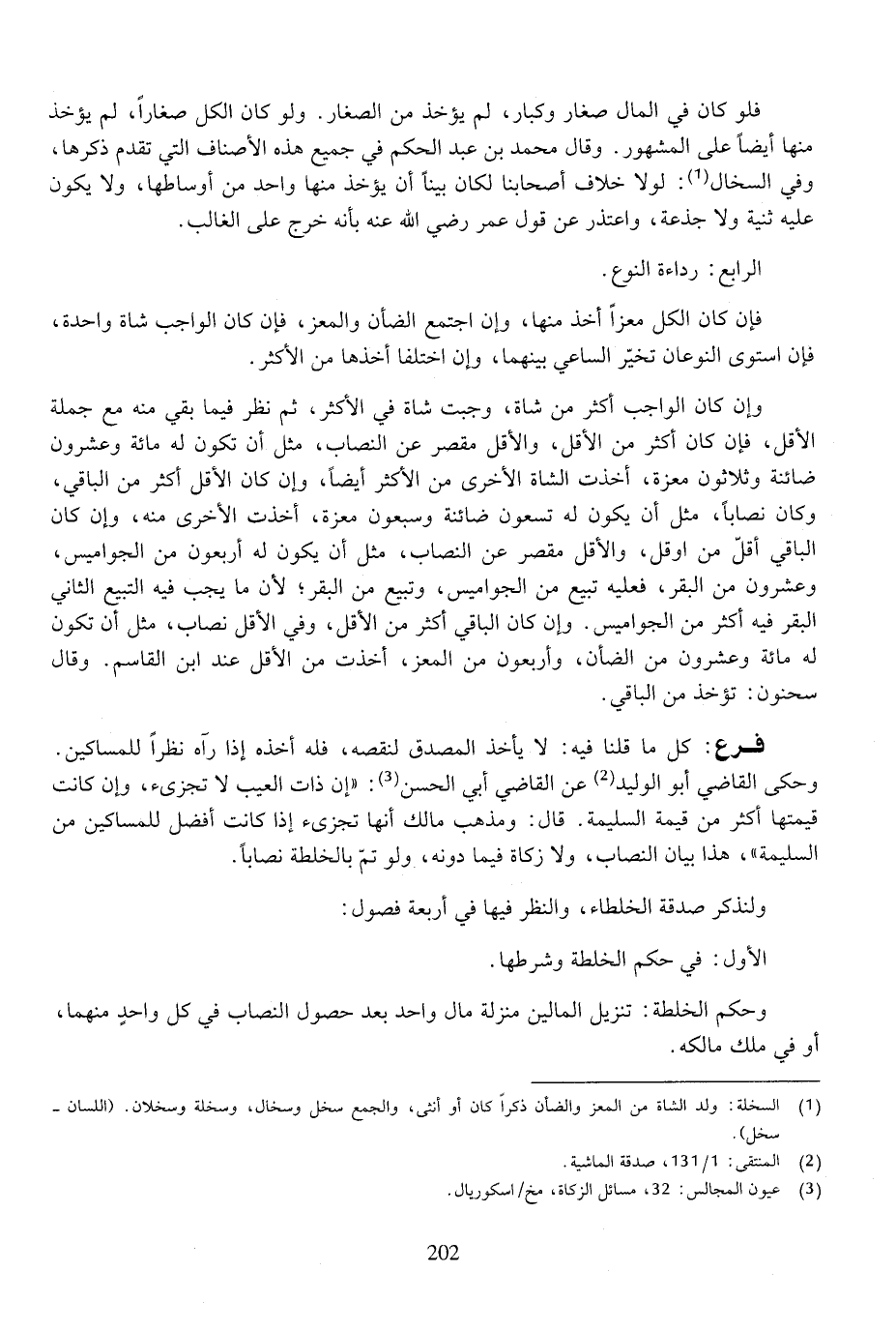 ولنذكر صدقة الخلطاء، والنظر فيها في أربعة فصول.
