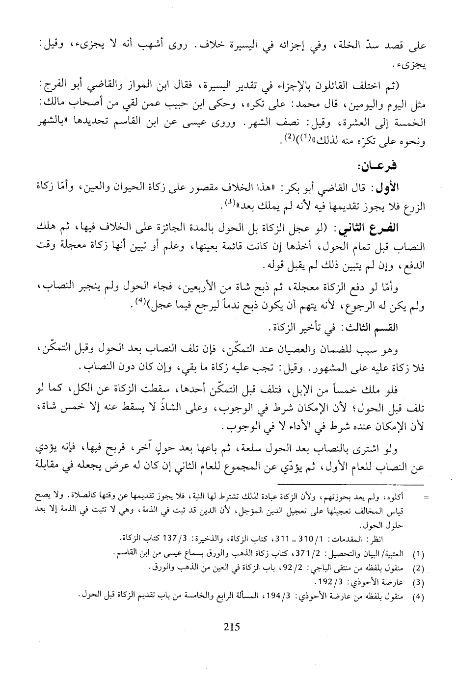 وهو سبب للضمان والعصيان عند التمكن، فإن تلف النصاب بعد الحول وقبل التمكن نفلا زكاة عليه على المشهور. وقيل: تجب عليه زكاة ما بقي، وإن كان دون النصاب.