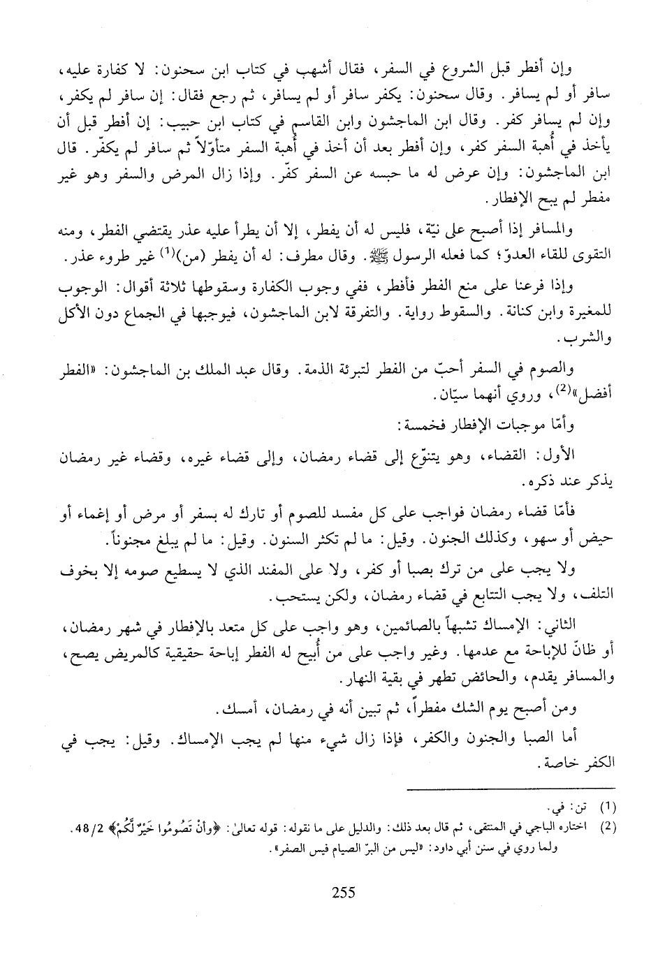 والصوم في السفر أحب من الفطر لتبرئة الذمة. وقال عبد الملك بن الماجشون: " الفطر أفضل، وري أنهما سيان.