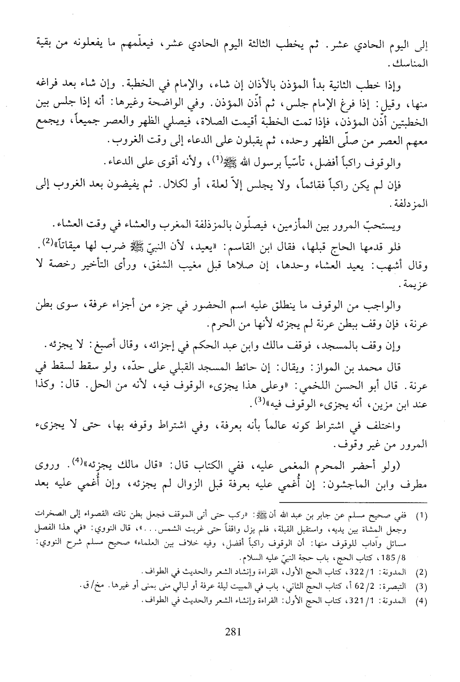 فإن لم يكن راكبا قائما، ولا يجلس إلا لعلة، أو لكلال. ثم يفيضون بعد الغروب إلى المزدلفة.