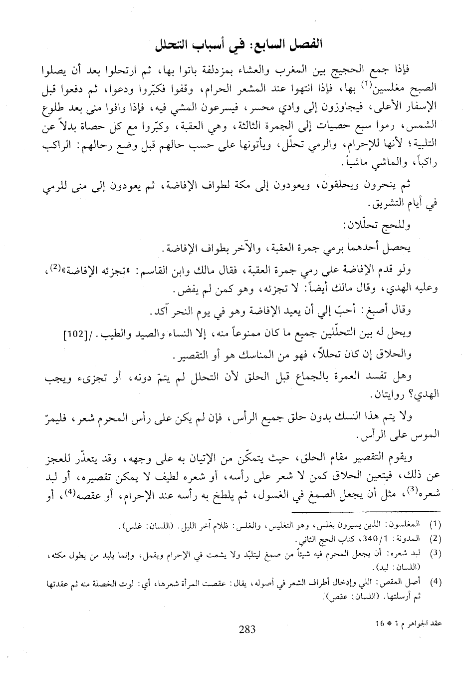 فإذا جمع الحجيج بين المغرب والعشاء بمزدلفة باتوا بها، ثم ارتحلوا بعد أن يصلوا الصبح مغلسين بها، فإذا انتهوا عند المشعر الحرام، وقوفا فكبروا ودعوا، ثم دفعوا قبل الأسفار الأعلى، فيجاوزون إلى وادي محسر، فيسرعون المشي فيه، فإذا وافوا منى بعد طلوع الشمس، رموا سبع حصيات إلى الجمرة الثالثة، وهي العقبة، وكبروا مع كل حصاة بدلا عن التلبية؛ لأنها للإحرام، والرمي تحلل، ويأتونها على حسب حالهم قبل وضع رحالهم: الراكب راكبا، والماشي ماشيا.