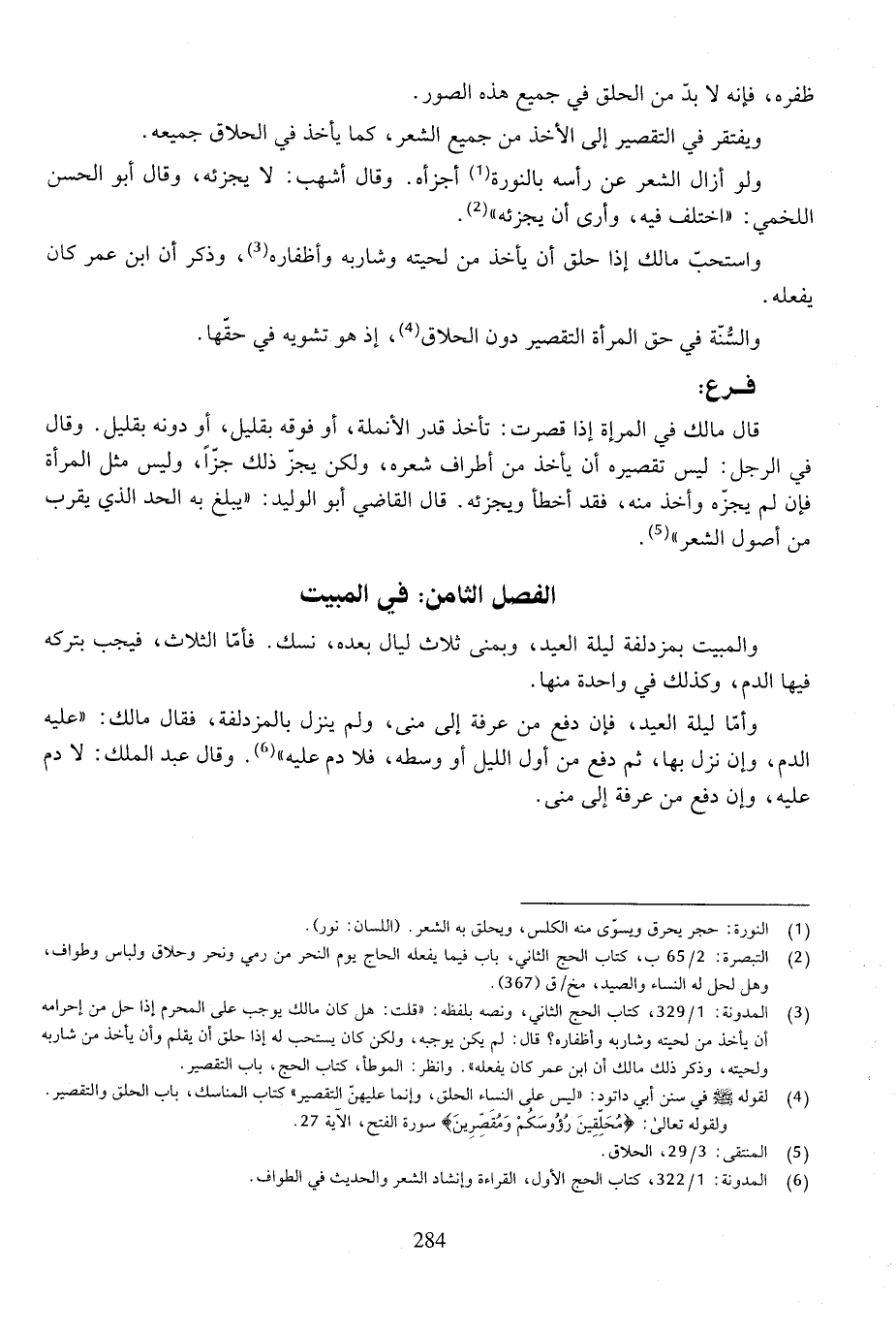 قال مالك في المرأة إذا قصرت: تأخذ قدر الأنملة، أو فوقه بقليل: أو دونه بقليل. وقال في الرجل: ليس تقصيره أن أخذ من أطراف شعره، ولكن يجز ذلك جزا، وليس مثل المرأة فإن لم يجزه وأخذ منه، فقد أخطأ ويجزئه. قال القاضي أبو الوليد: " يبلغ به الحد الذي يقرب من أصول الشعر ".