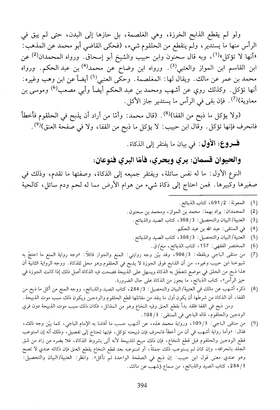 (ولا يؤكل ما ذبح من القفا). (قال محمد: وأما من أراد أن يذبح في الحلقوم فأخطأ فانحرف فإنها تؤكل. وقال ابن حبيب: لا يؤكل ما ذبح من القفا، ولا في صفحة العنق).