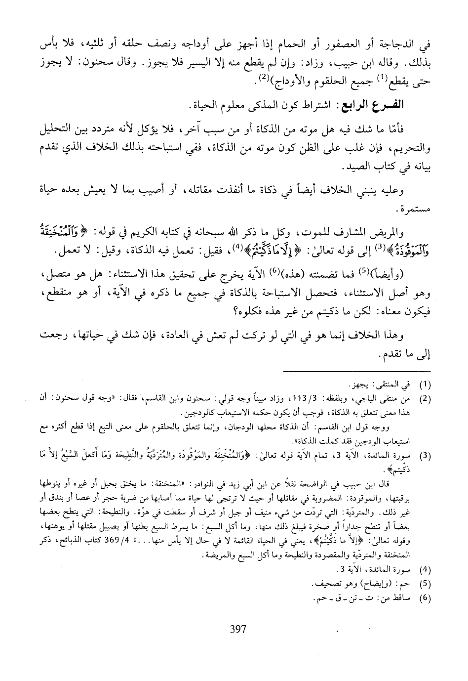 والمريض المشارف للموت، وكل ما ذكر الله سبحانه في كتابه الكريم في قوله: {والمنخنقة والموقوذة} إلى قوله تعالى: {إلا ما ذكيتم}، فقيل: تعمل فيه الذكاة، وقيل: لا تعمل.