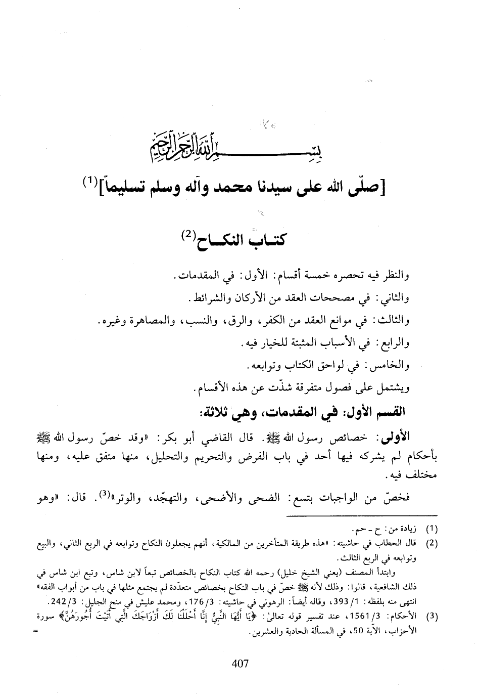 القسم الأول: في المقدمات، وهي ثلاثة: