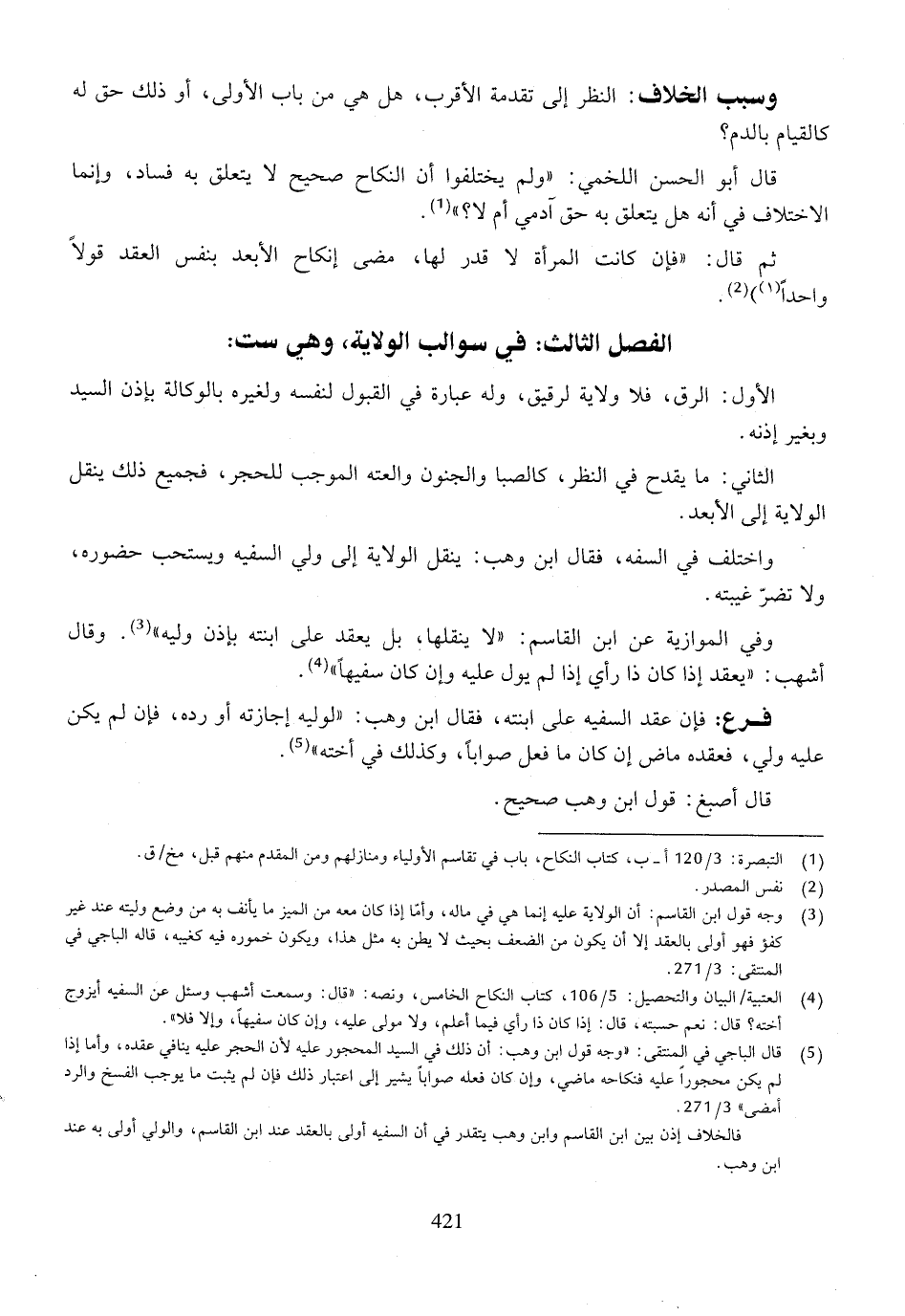 الفصل الثالث: في سوالب الولاية، وهي ست: