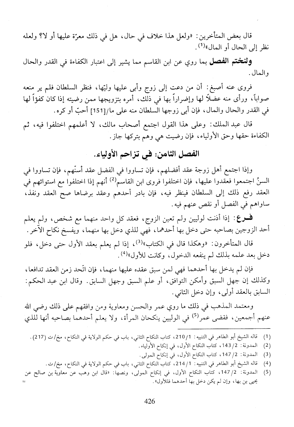 ولنختم الفصل بما روي عن ابن القاسم مما يشير إلى اعتبار الكفاءة في القدر والحال والمال.