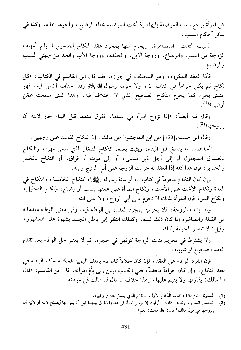 وقال ابن حبيب عن ابن الماجشون عن مالك: إن النكاح الفاسد على وجهين: