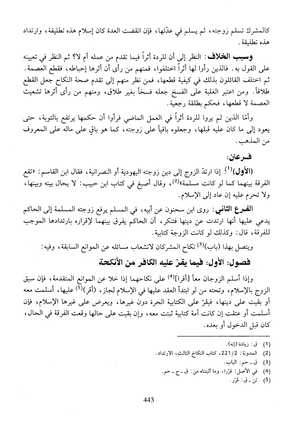 (الأول). إذا ارتد الزوج إلى دين زوجته اليهودية أو النصرانية، فقال ابن القاسم: ((تقع الفرقة بينهما كما لو كانت مسلمة))، وقال أصبغ في كتاب ابن حبيب: لا يحال بينه وبينها، ولا تحرم عليه إن عاد إلى الإسلام.