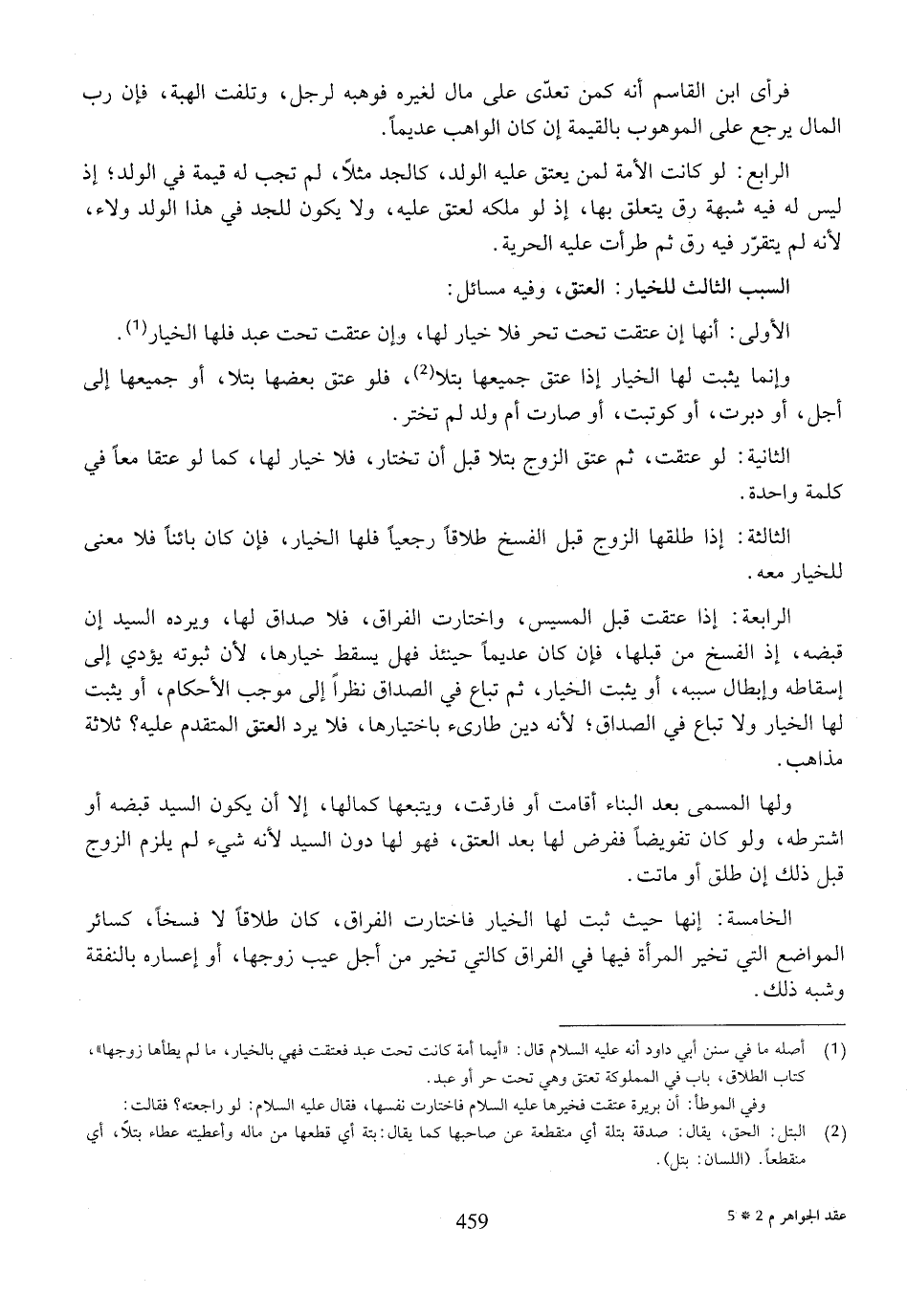 كتاب عقد الجواهر الثمينة في مذهب عالم المدينة (اسم الجزء: 2)
