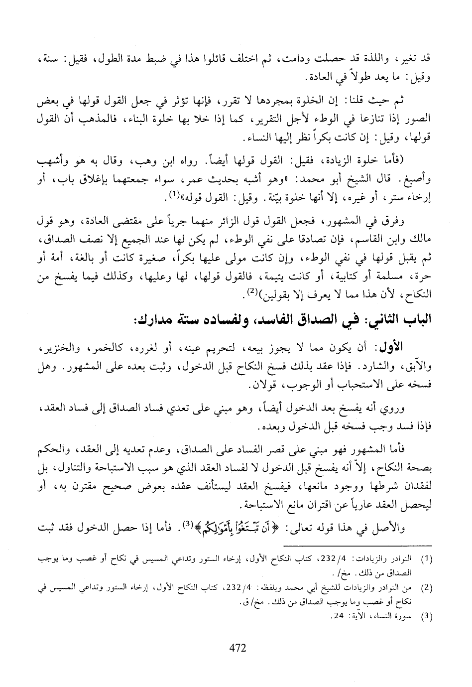 الباب الثاني: في الصداق الفاسد، ولفساده ستة مدارك: