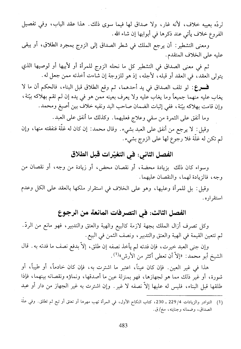 الفصل الثالث: في التصرفات المانعة من الرجوع