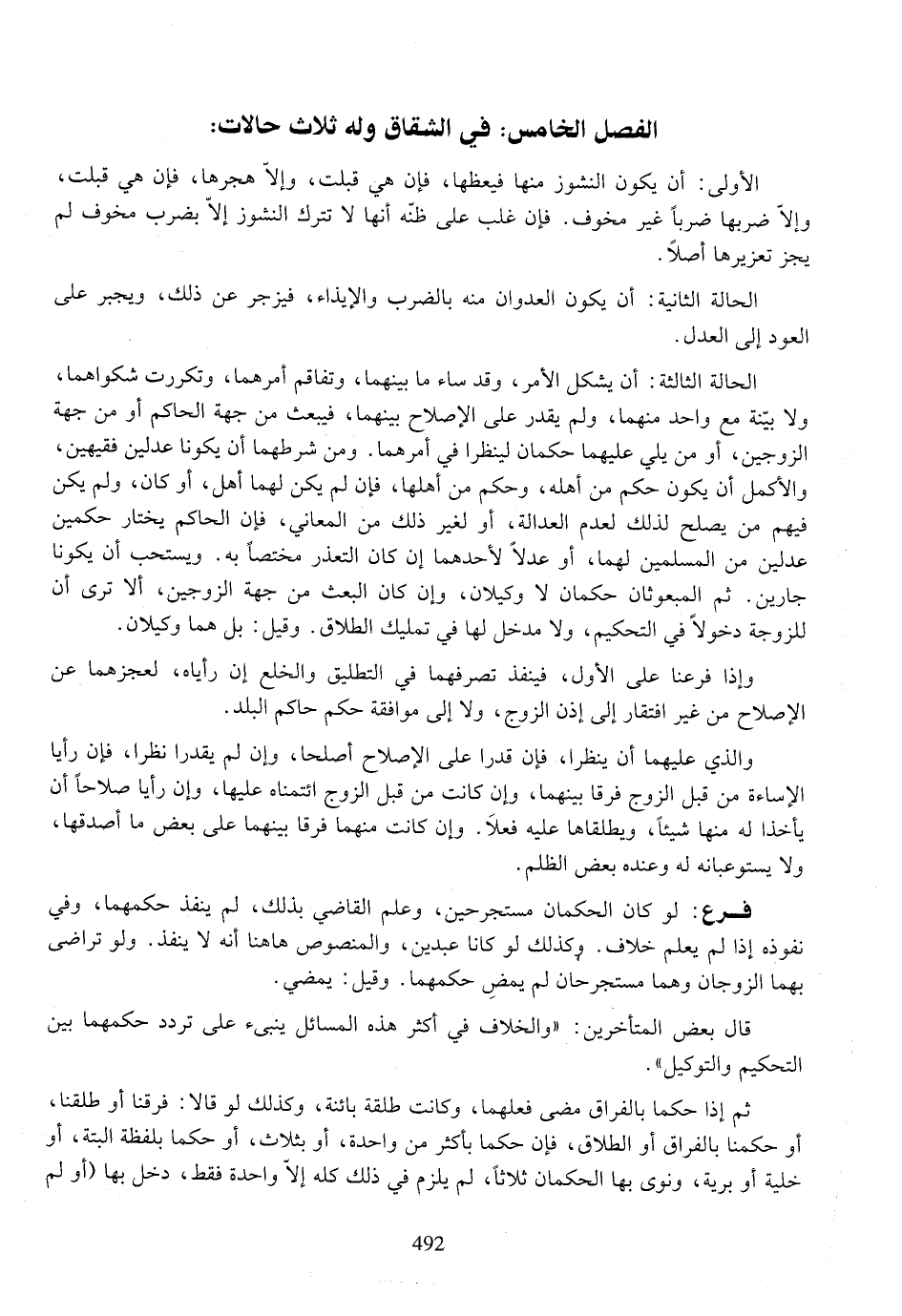 الفصل الخامس: في الشقاق وله ثلاث حالات: