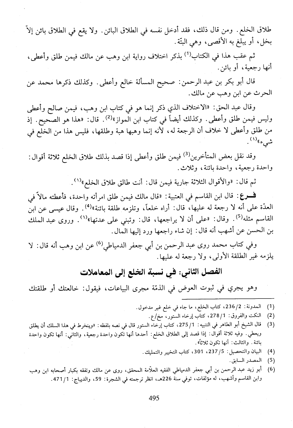 الفصل الثاني: في نسبة الخلع إلى المعاملات