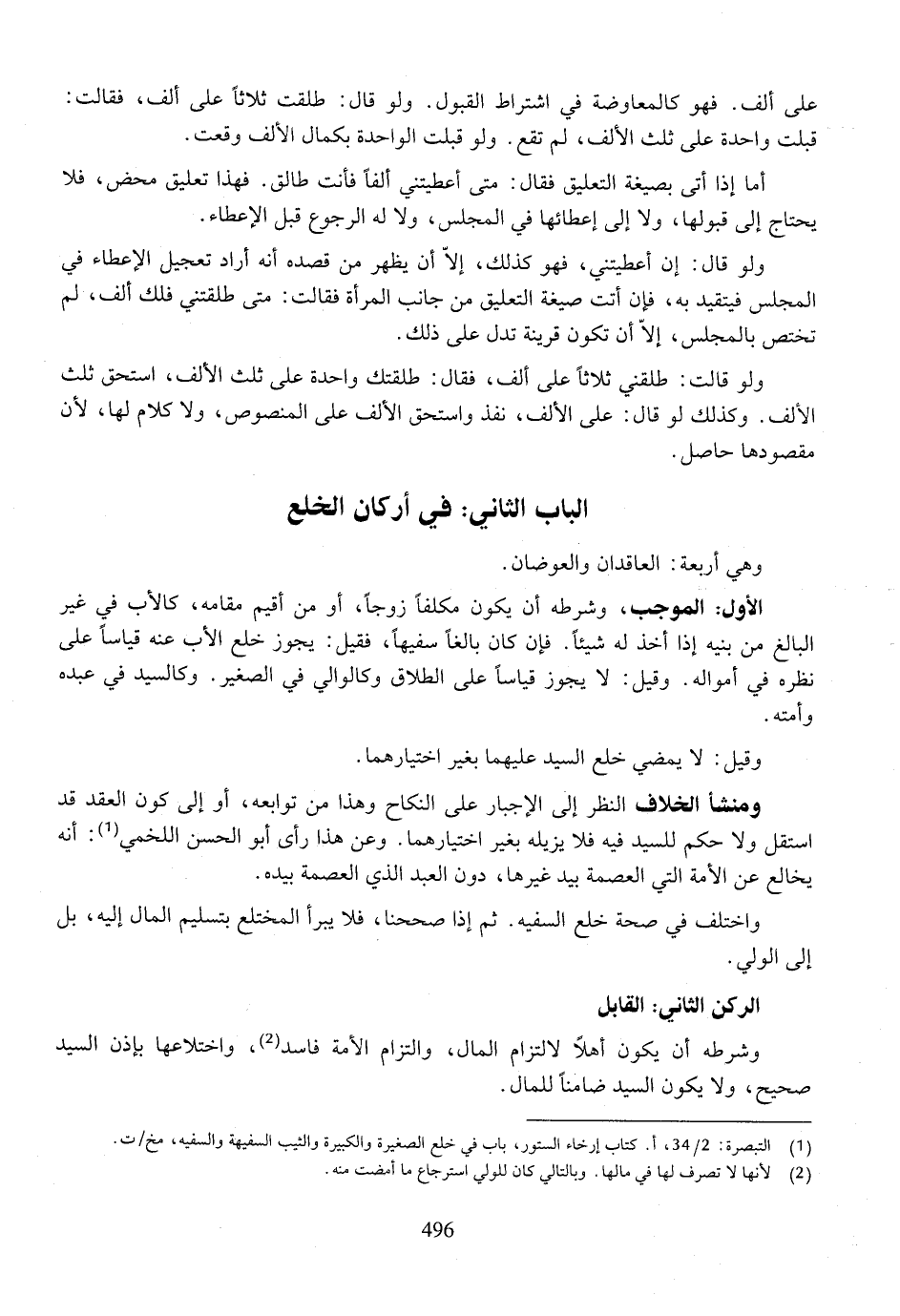 الباب الثاني: في أركان الخلع