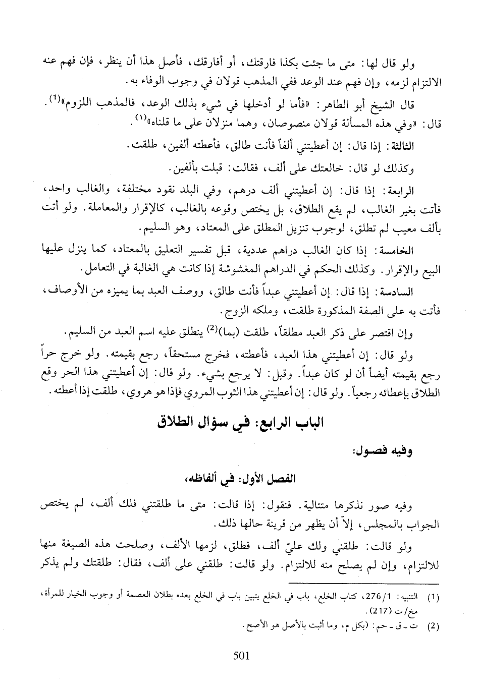 الباب الرابع: في سؤال الطلاق