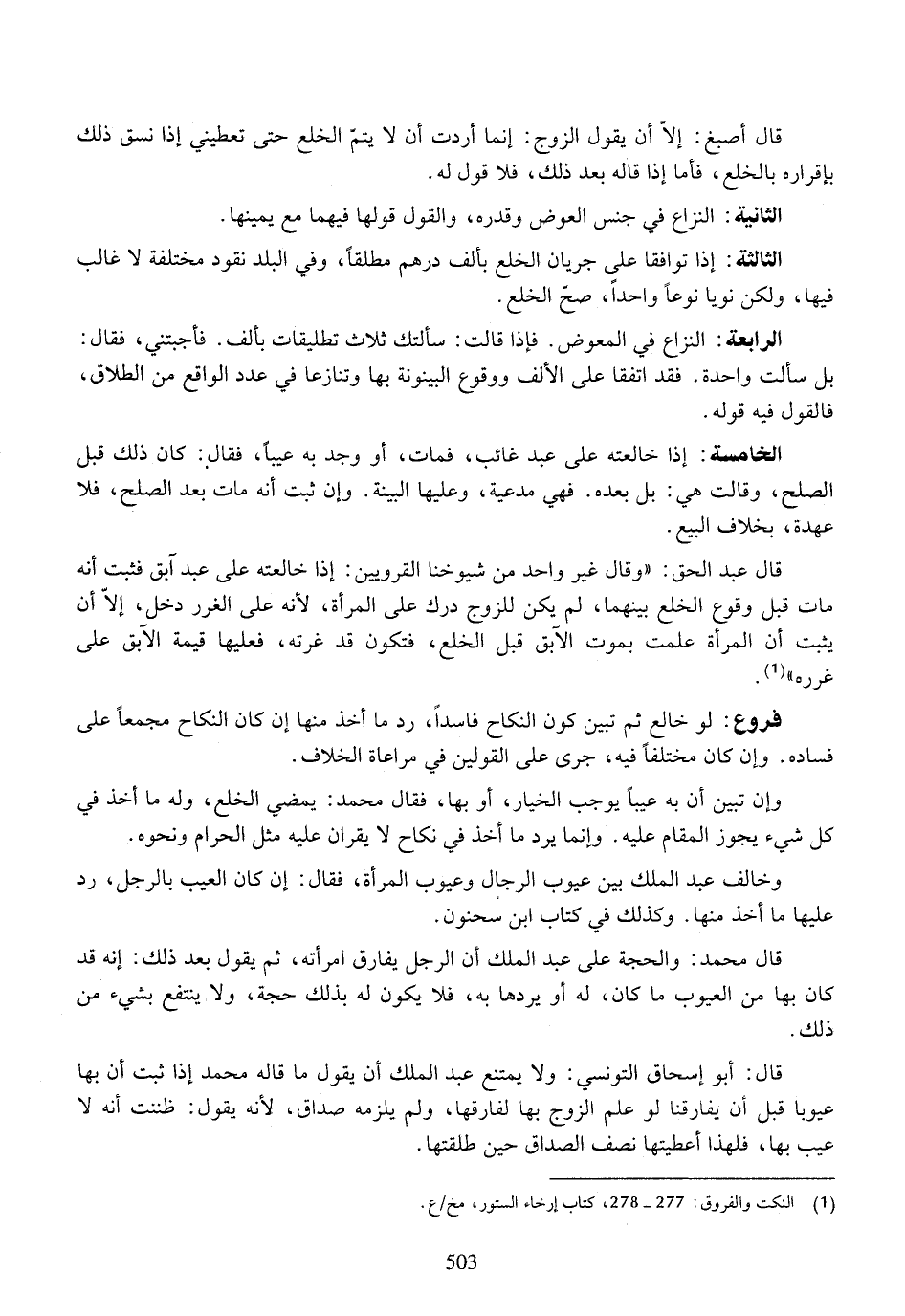 الرابعة: النزاع في المعوض. فإذا قالت: سألتك ثلاث تطليقات بألف. فأجبتني، فقال: بل سألت واحدة. فقد اتفقا على الألف ووقوع البينونة بها وتنازعا في عدد الواقع من الطلاق، فالقول فيه قوله.
