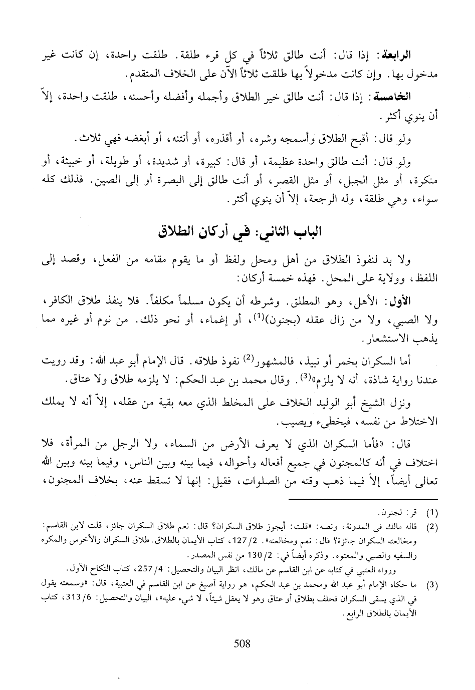 الباب الثاني: في أركان الطلاق