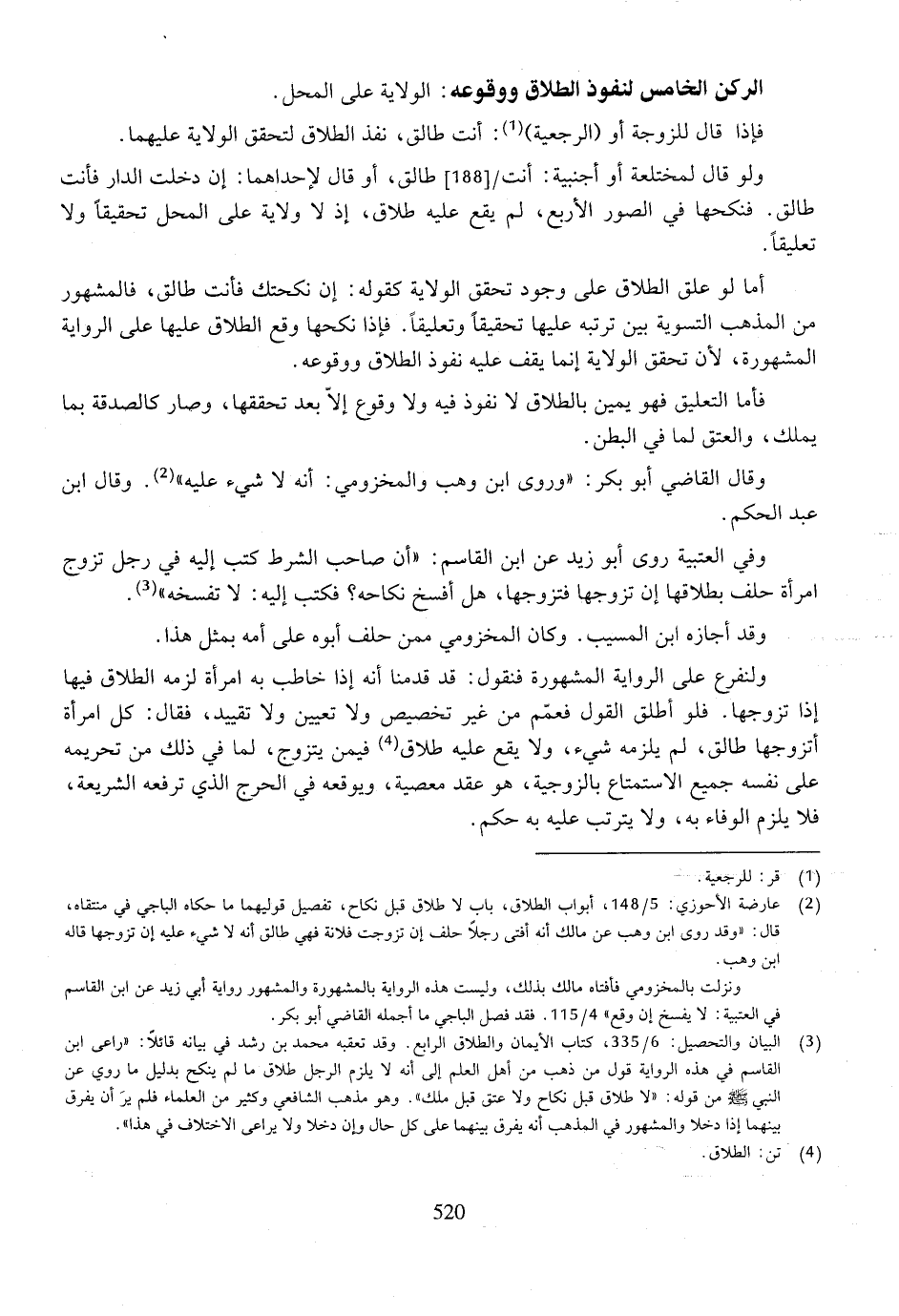 الركن الخامس لنفوذ الطلاق ووقوعه: الولاية على المحل.