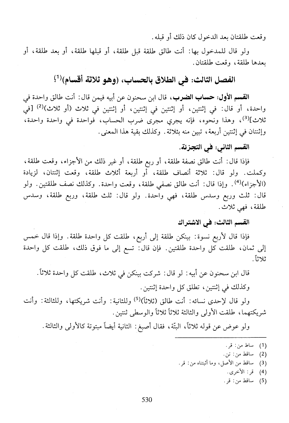 الفصل الثالث: في الطلاق بالحساب، (وهو ثلاثة أقسام)