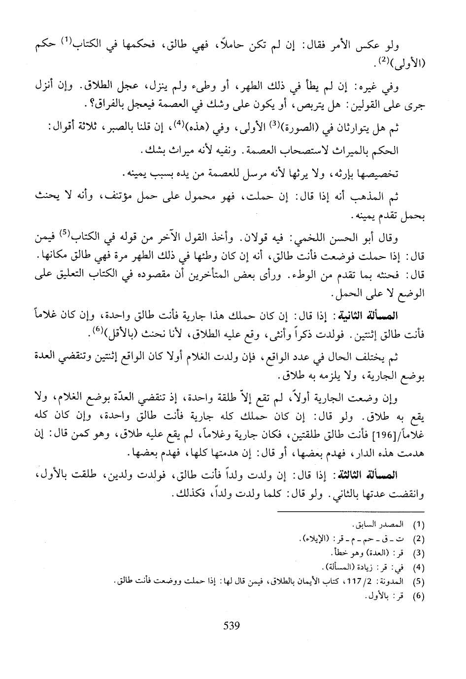 المسألة الثانية: إذا قال: إن كان حملك هذا جارية فأنت طالق واحدة، وإن كان غلاماً فأنت طالق إثنتين. فولدت ذكراً وأنثى، وقع عليه الطلاق، لأنا نحنث (بالأقل).