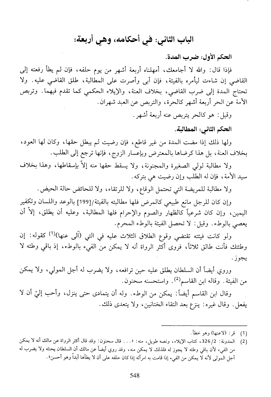 الباب الثاني: في أحكامه، وهي أربعة: